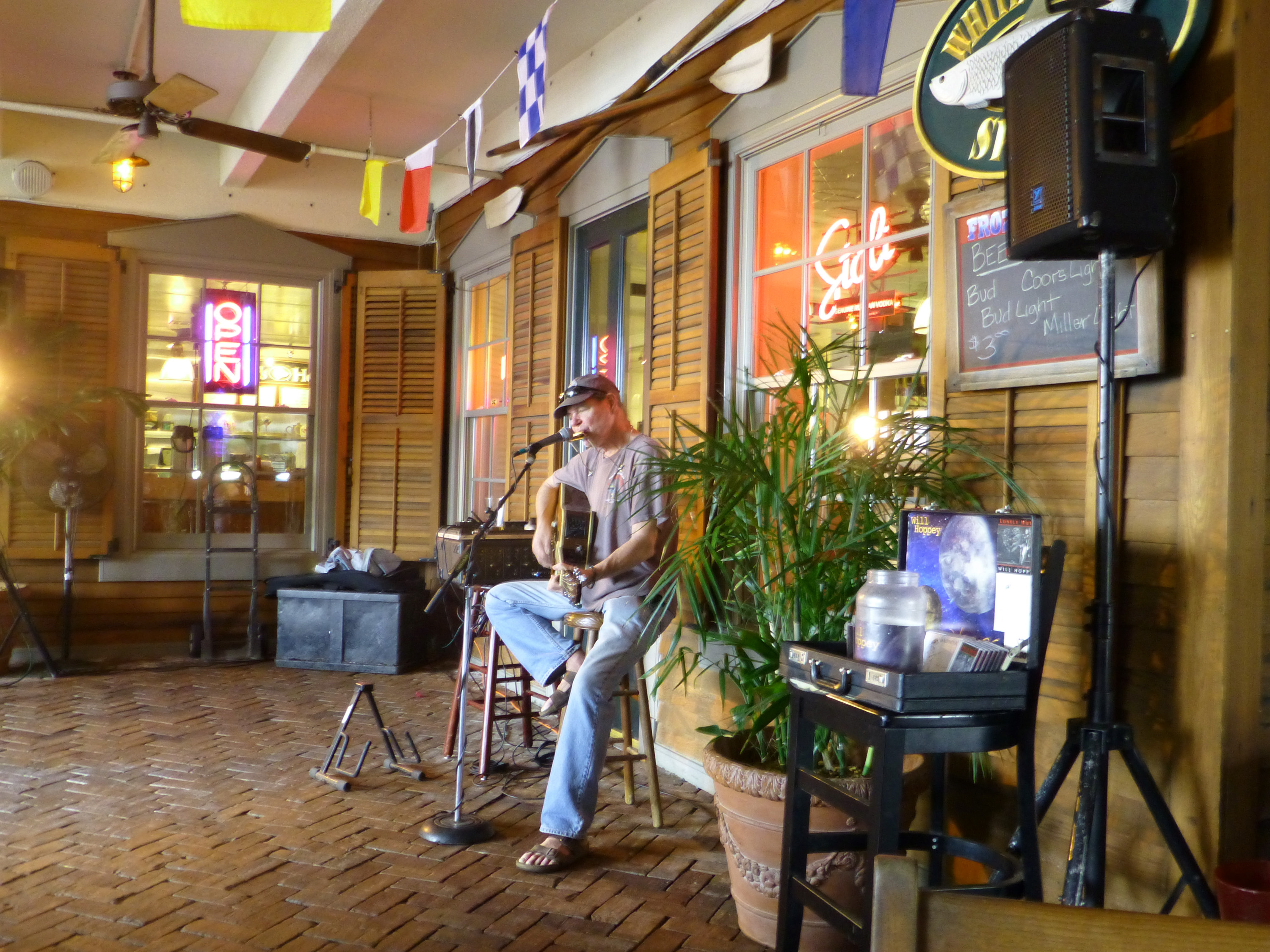 We originally headed down to Key West back in 2006 to visit friends of ours who come down for half the year from NY (a.k.a. Willy Hoppey his wife Lynda). Once we went we were hooked and have been going down to see them every year. I knew that our friend Will was playing at the White Tarpon that afternoon until 4pm so we headed out towards the White Tarpon to catch his final set http://whitetarpon.com/.