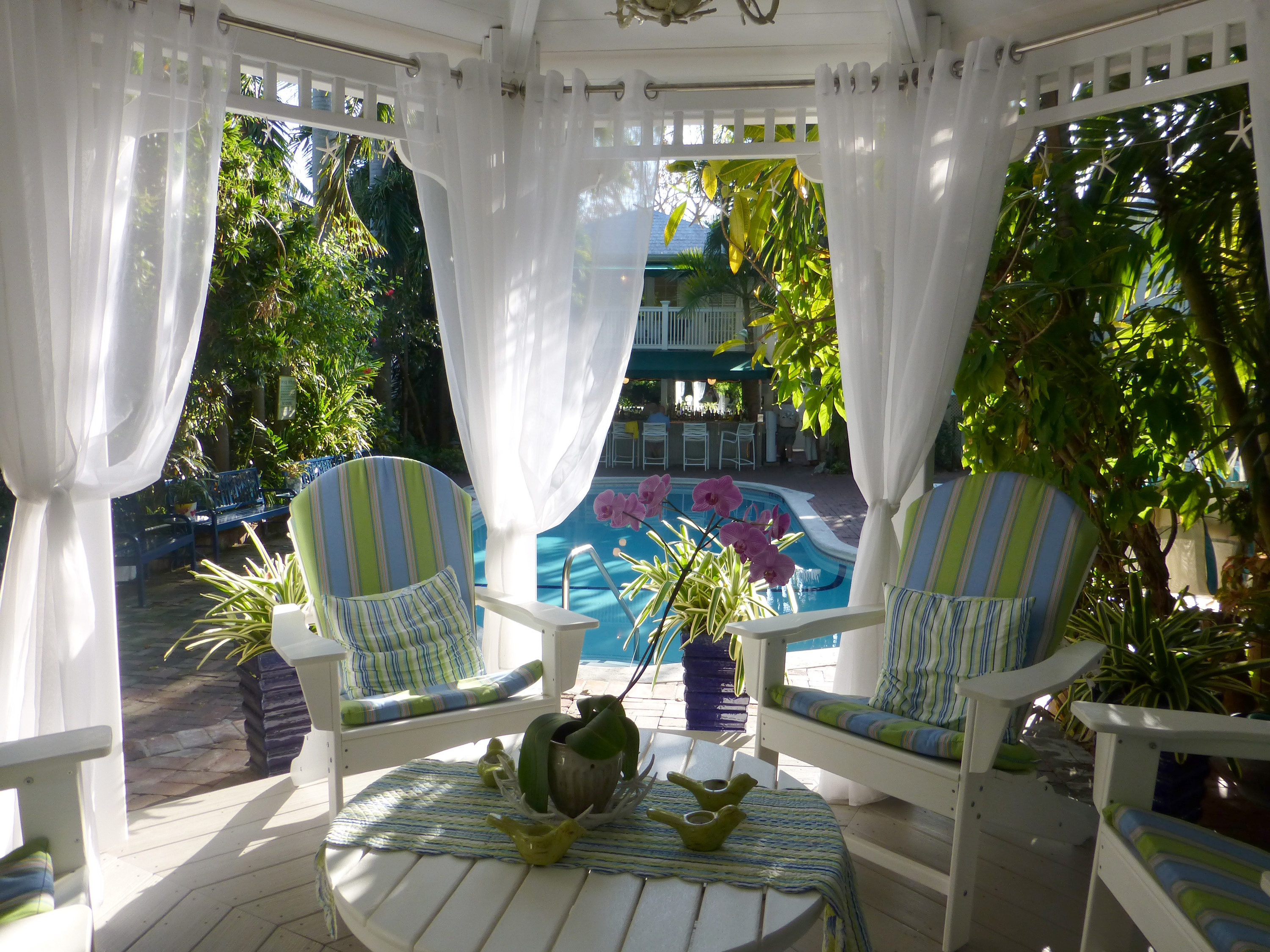 We noticed that they now have a beautiful gazebo pool side where the jacuzzi used to be. Our room wasn’t ready so we decided to sit at the Garden’s bar near the pool to relax for a bit.