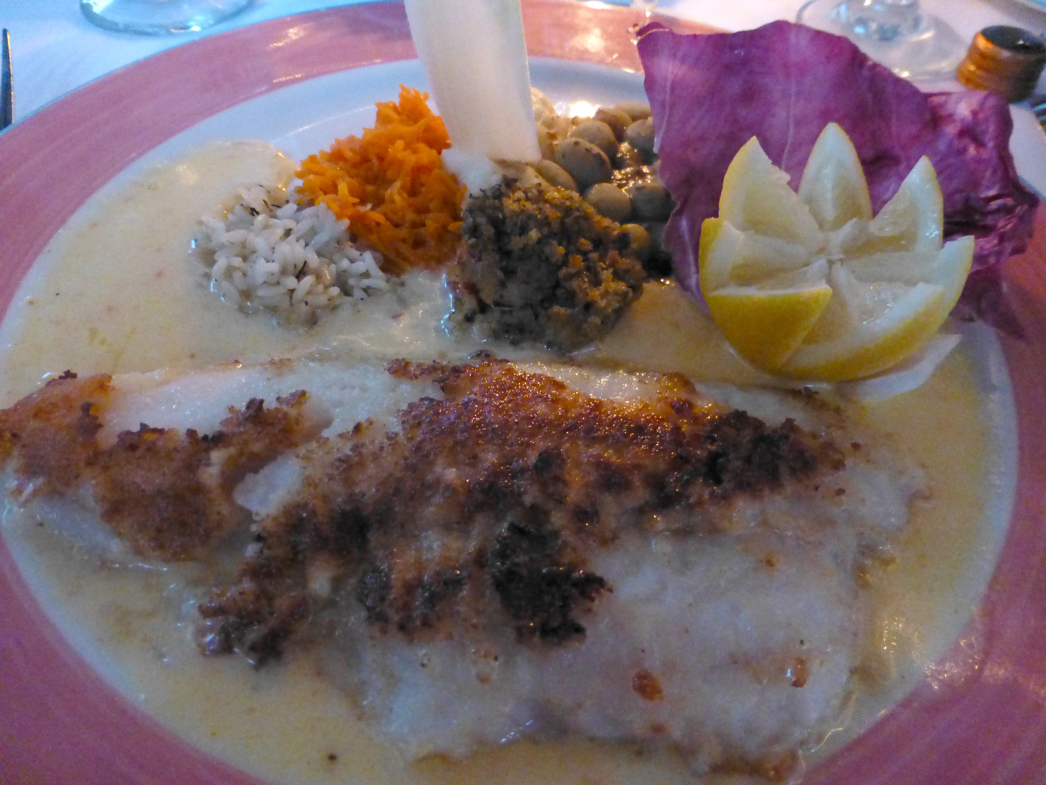 For an appetizer I had the oysters rockefeller – and didn’t take a picture because I ate them to fast! For dinner I had the pan seared snapper which was very good.