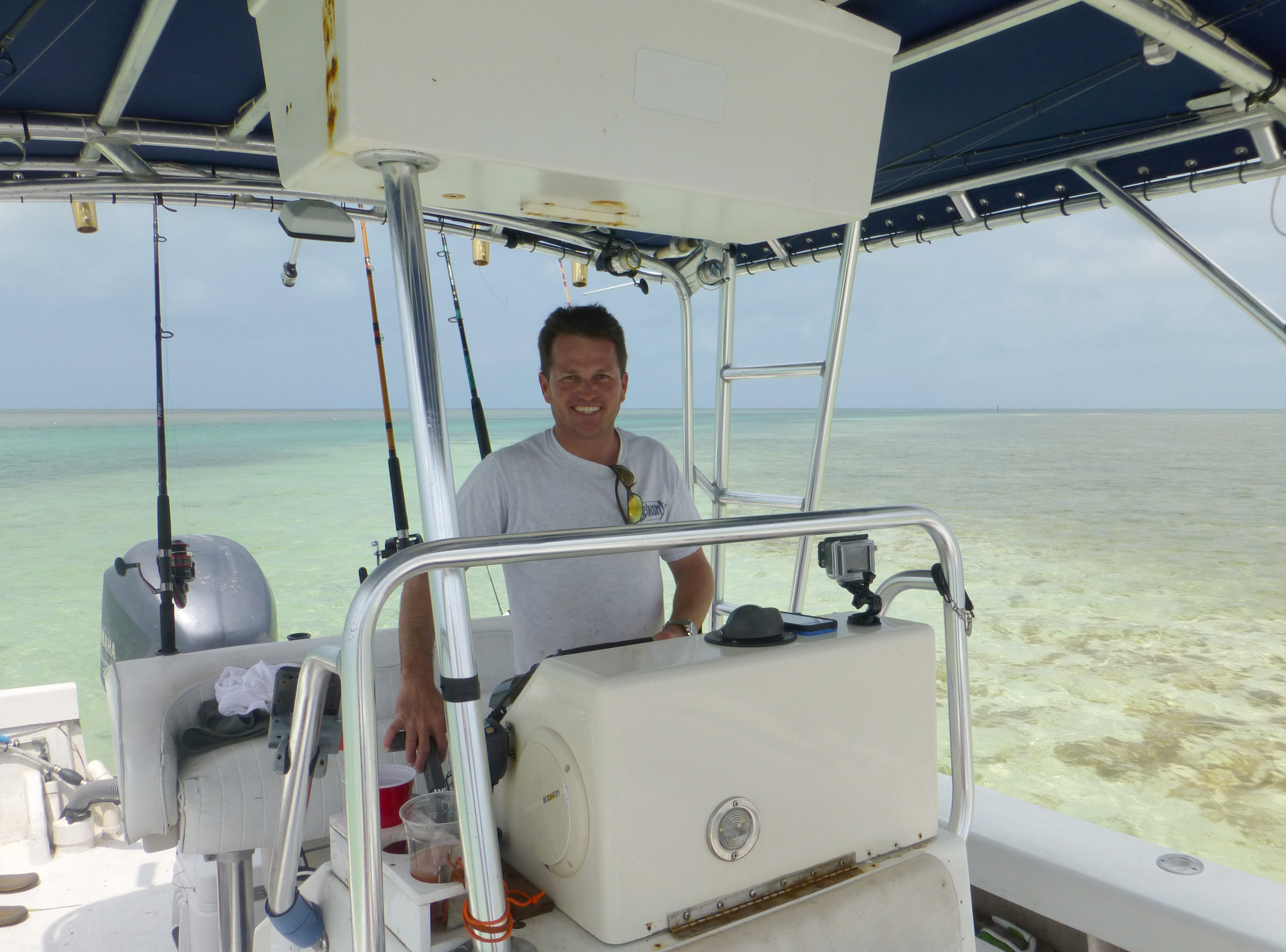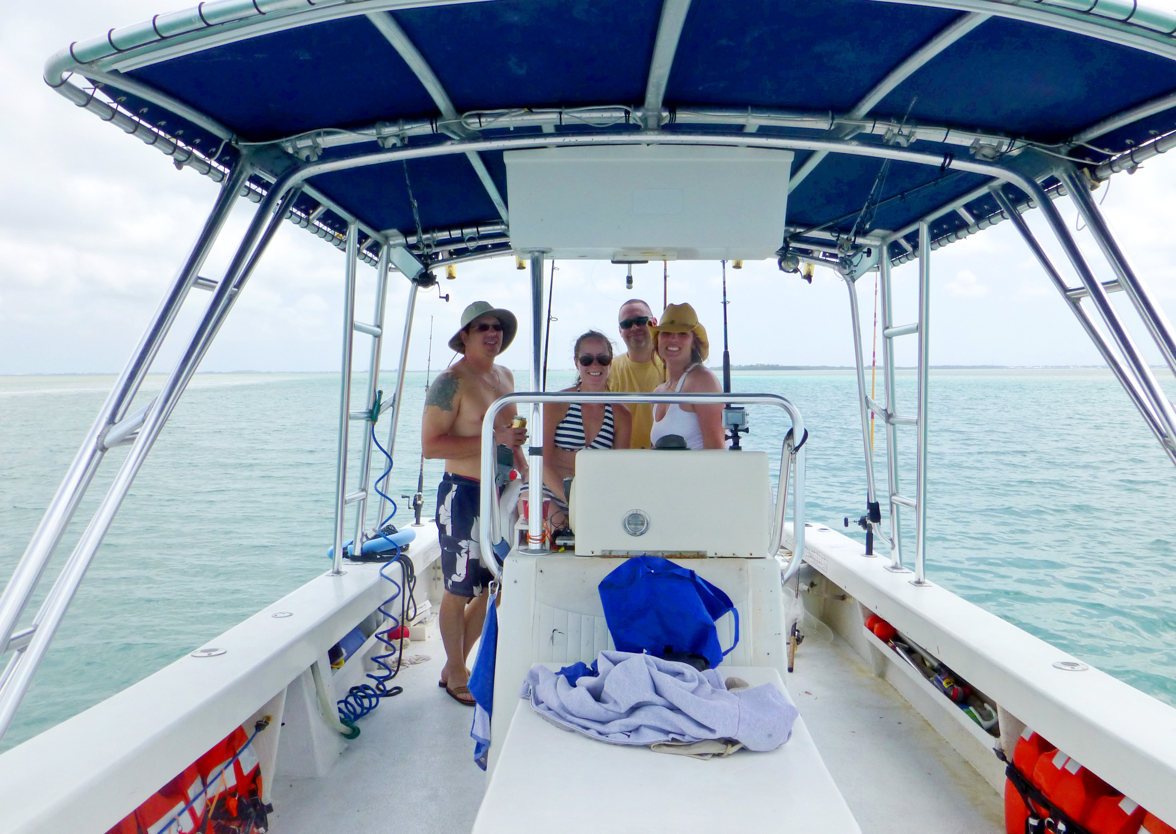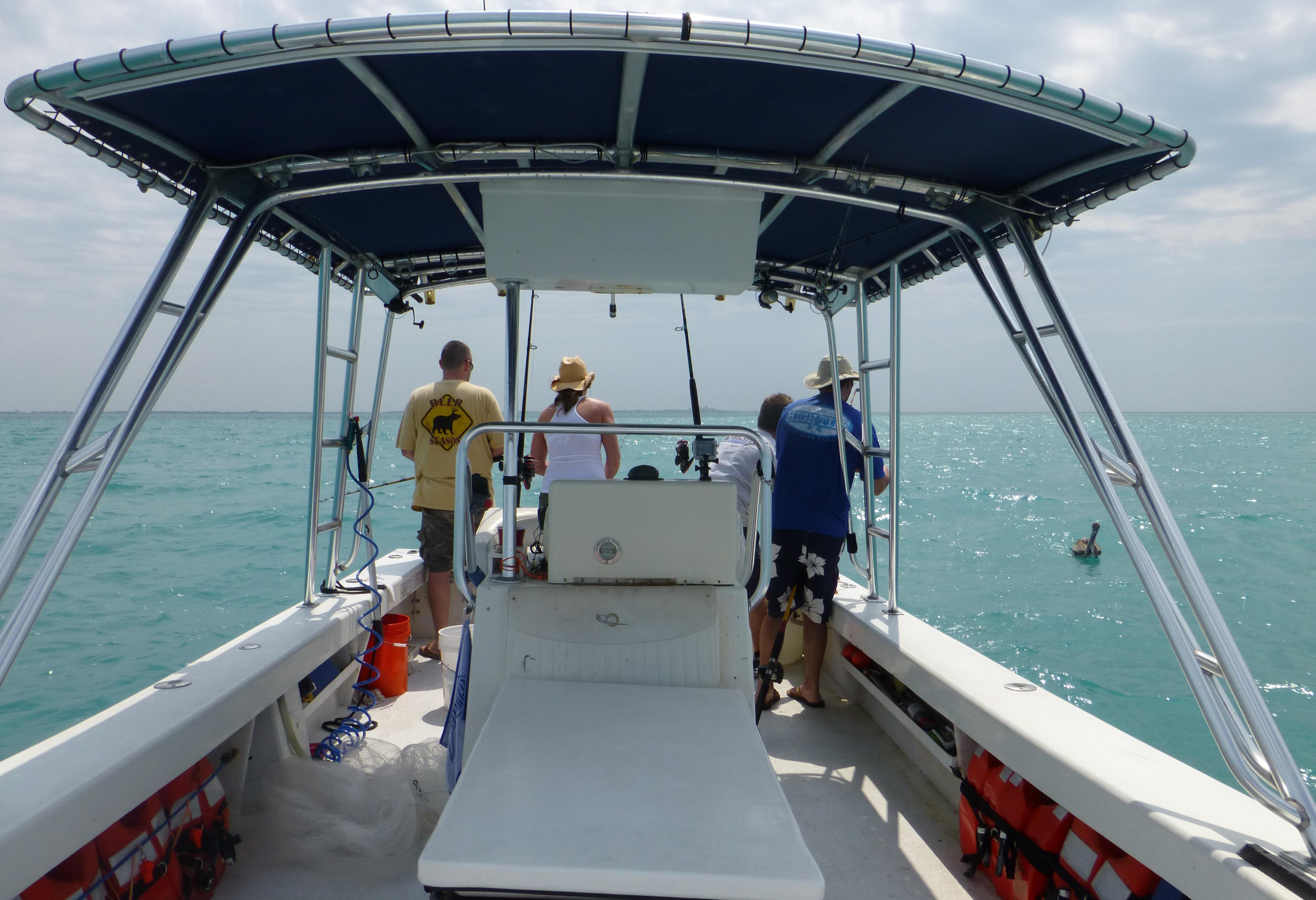 A few hours passed and I was feeling better. Everyone had their fill of fishing, so Billy took us to a sand bar. It was high tide when we got to the sand bar, so it was completely covered with water. We were still able to get out walk around.