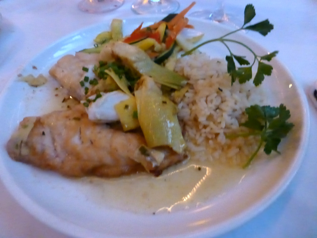 For dinner everyone had the catch of the day with their side dishes of the day.