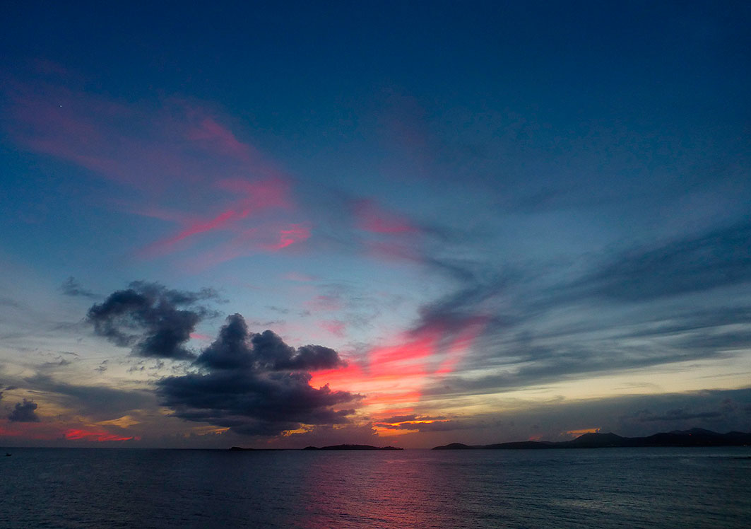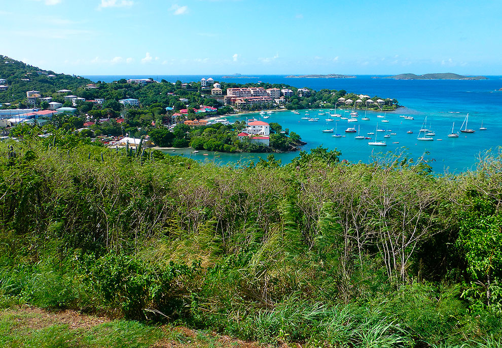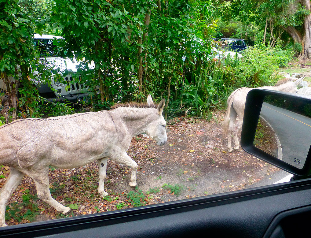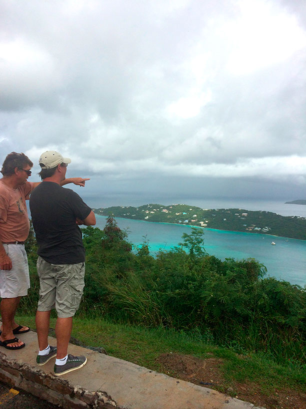 Luckily the skies cleared somewhat so the ferry ride wasn’t too bad. We gathered our things and met Joe. We had some time before going to the airport. He wound up taking us around the island showing us some beautiful sights, including the overlook to Magen’s Bay.
