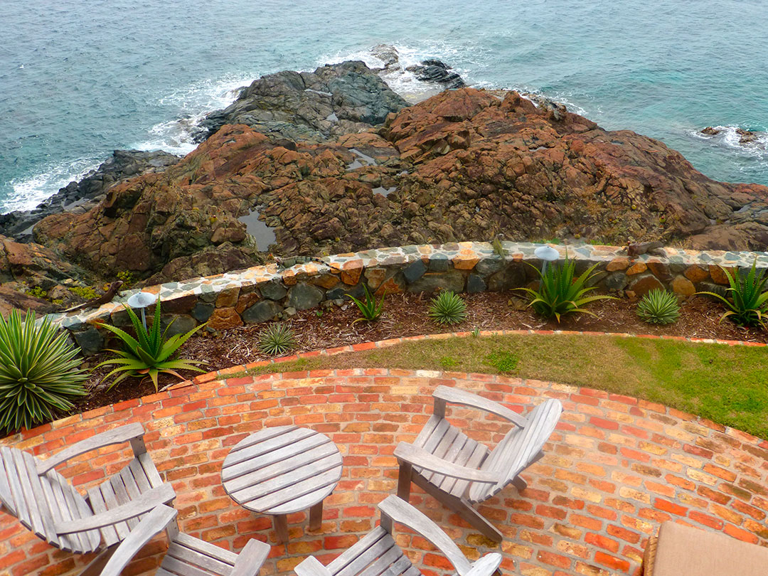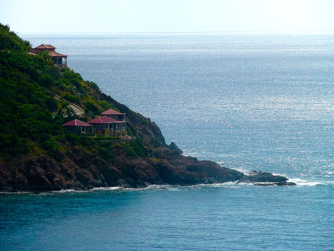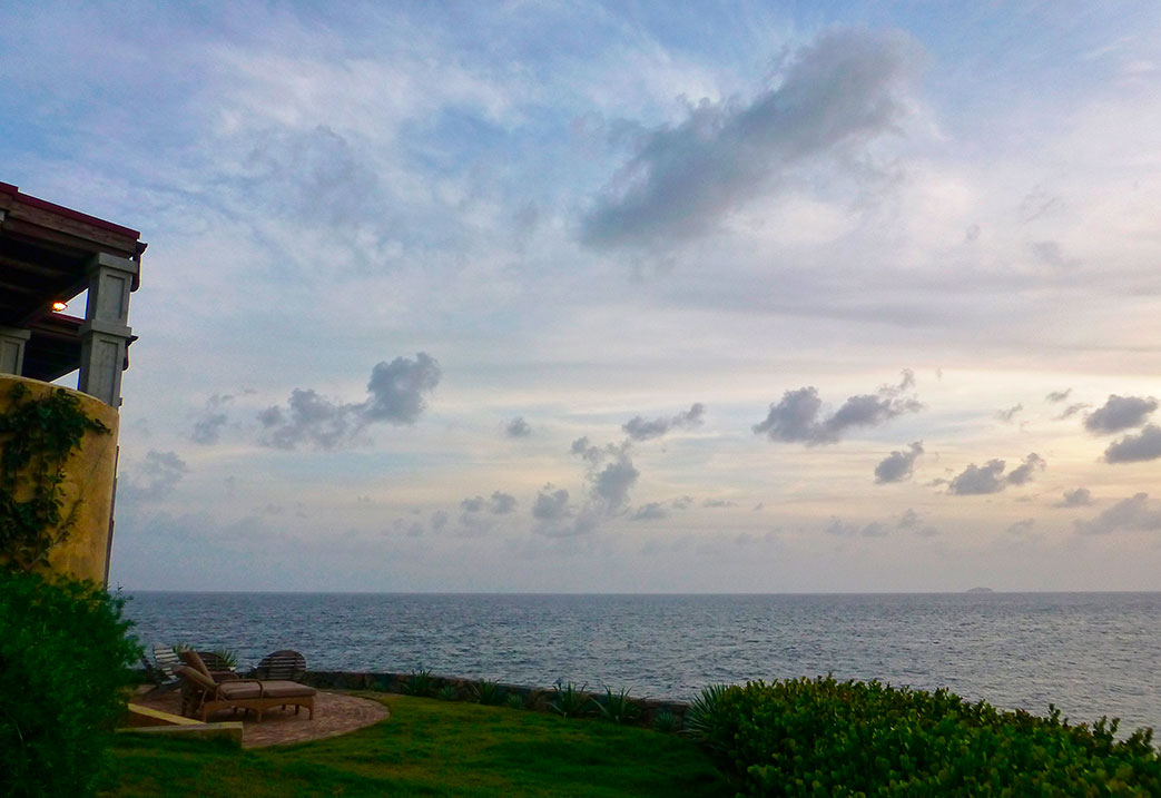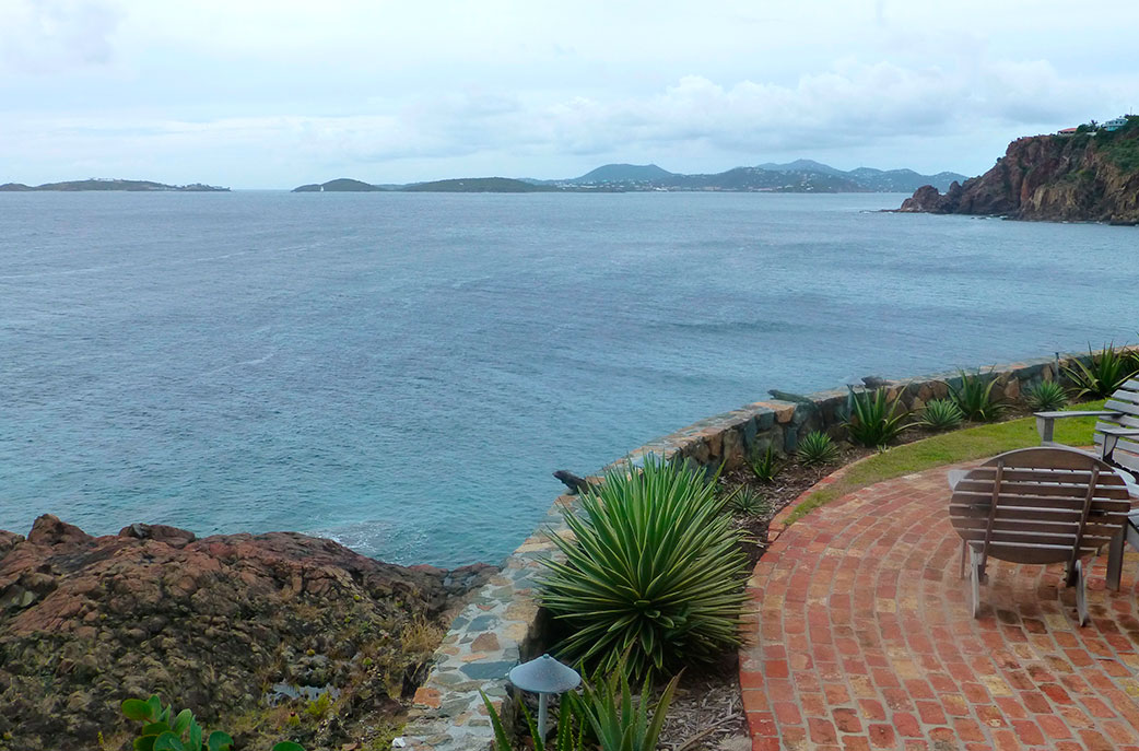 I got in touch with him and we decided to meet him on location after breakfast. The villa is located in Chocolate Hole area on Great Cruz Bay road. It is being built right below Sopre Mare, his other villa. We pulled up and were great by Mike. He was very nice as he showed us around the construction site. We walked to the area of the living room where you could see out over the cliff onto the water. As were standing there I noticed WOW across the way.