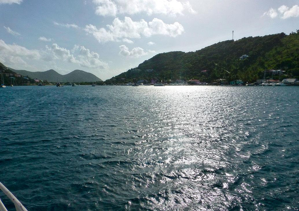 On our way towards Jost, I noticed the ferry started to take a turn towards Tortola. I heard that sometimes the ferry first stops at West End, Tortola before ending up at Jost. And that’s exactly what happened. It turned out that we were also going to go through customs in Tortola, so we all had to exit the ferry. While we were waiting online, there was a customs agent that was checking everyone’s forms to make sure they were filled out correctly. Drew and Pam were standing ahead of us and they had to make a few changes to their form. Luckily I had a pen and they were able to make those changes. It turned out a few times they had to ask us for a pen and it wound up being the joke of the day –