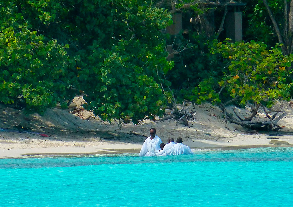 As we sat there I noticed that across the way there was something going on at Hawknest. We could hear faint sounds of singing and saw a large group of locals wearing their Sunday’s best and a few gentlemen in white. I figured that it must have been a baptism of some sort.