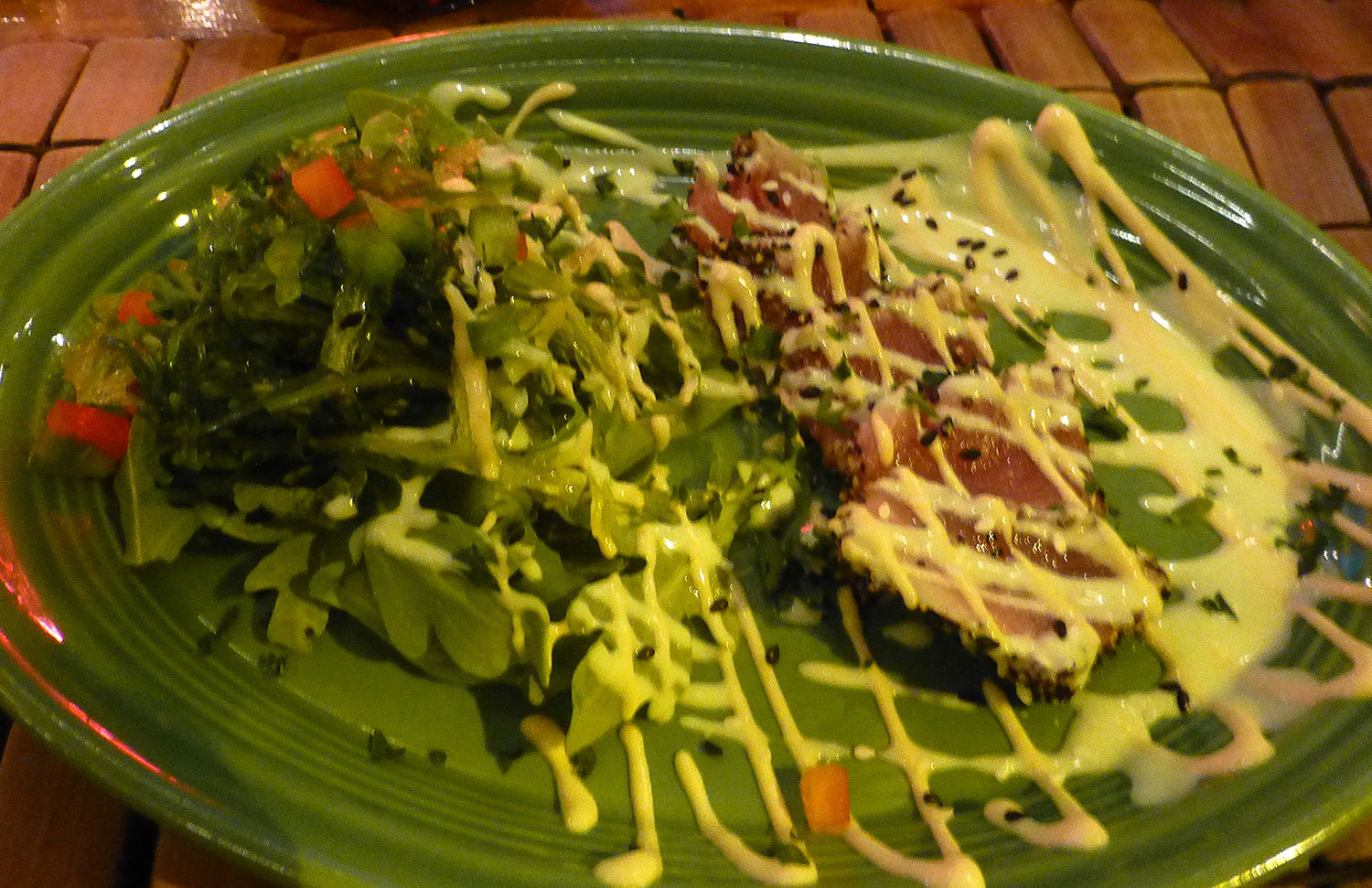 Our first course was an order of the tempura rock lobster tail and the cracked-pepper tuna.