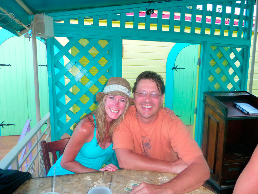 After a short 5 minute ride we arrived at the Soggy Dollar Bar. We asked the taxi driver to pick us back up at 1:30 so that we could go to Foxy’s before heading back to St. John. It was only around 9:40am so we had a lot of time to drink a lot of painkillers. We wound up hanging out with Drew and Pam for the entire time and we had a blast.