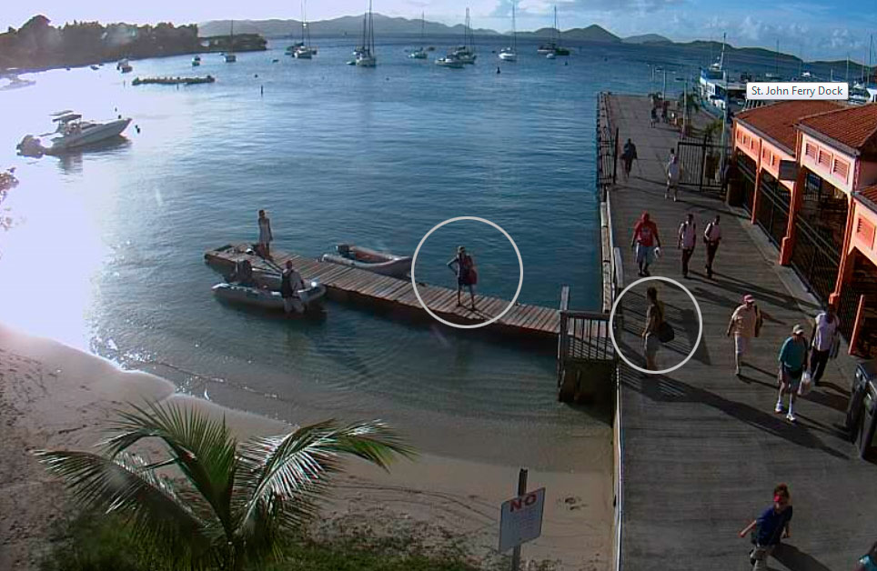 It was a beautiful short ride to St. John. Every time we arrive into Cruz Bay, we always notice how much every year it changes. As we docked, I gave my sister (back in NJ) the heads up that we were arriving. She was able to screen capture my image on the webcam.