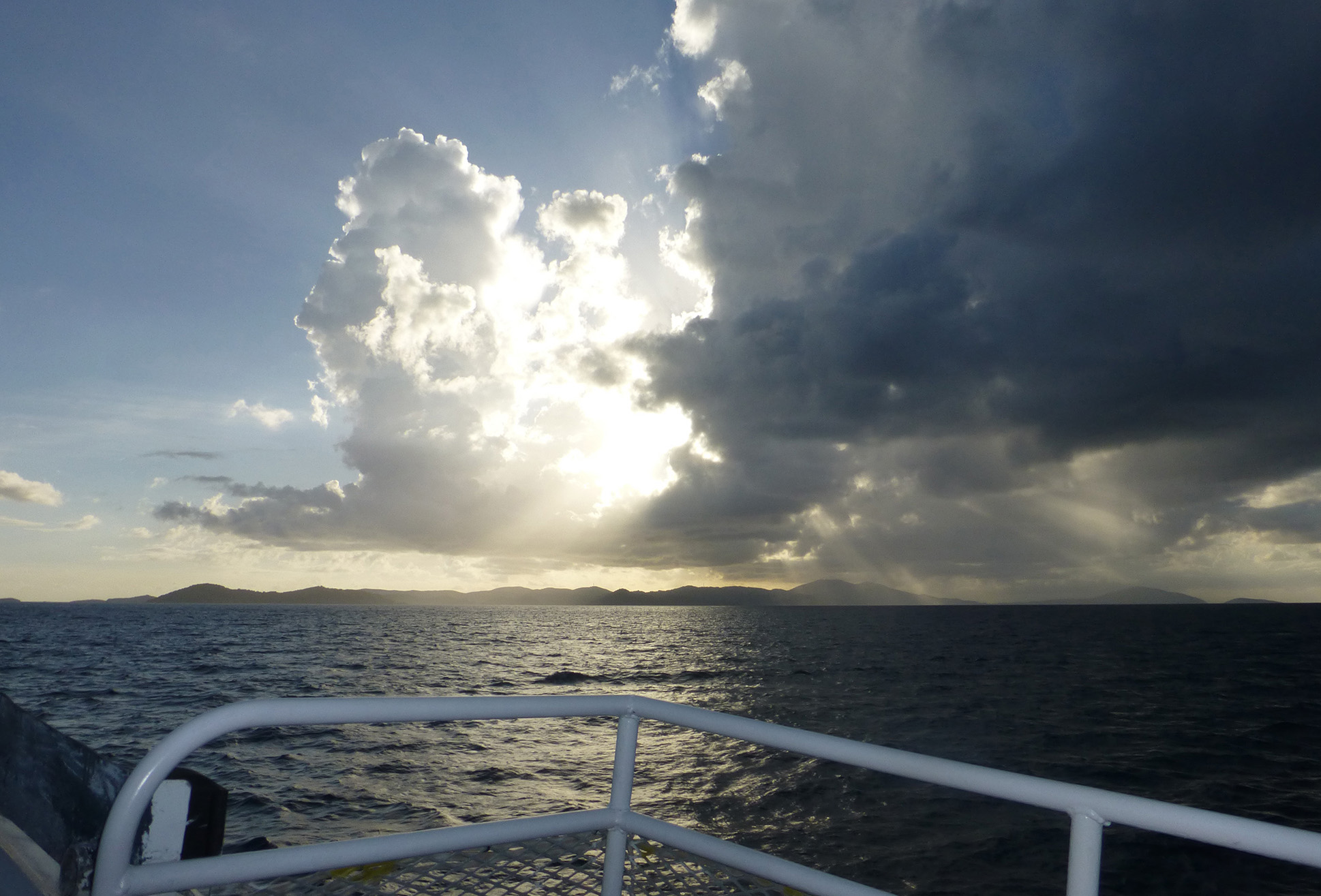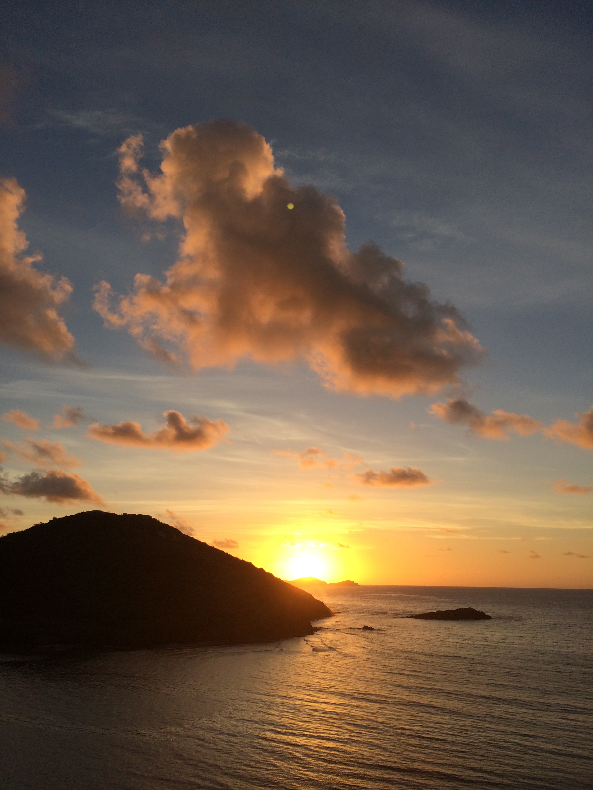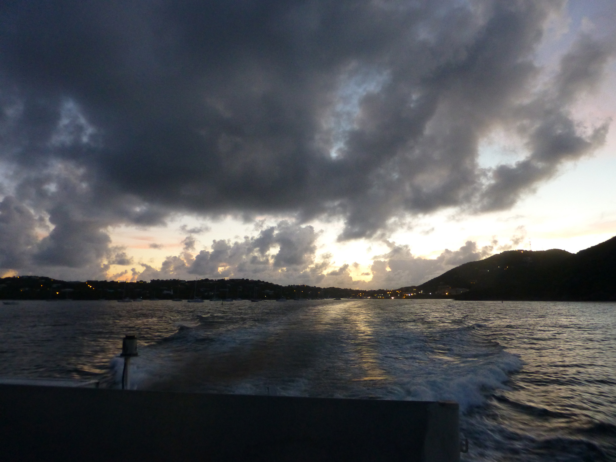 We went to the bar in the terminal and had a couple of rum punches. St. John was getting closer! Once we got the tickets in hand I sent another message to Justin reconfirming our later arrival and assured me that our rental car company were aware. By the time we got on the ferry the sun was setting. This was the first time we were arriving in St. John this late.