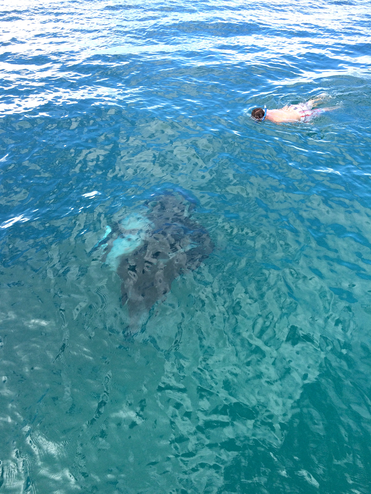 When we got back on the boat, all of a sudden Russell and my husband spotted a giant manta ray.