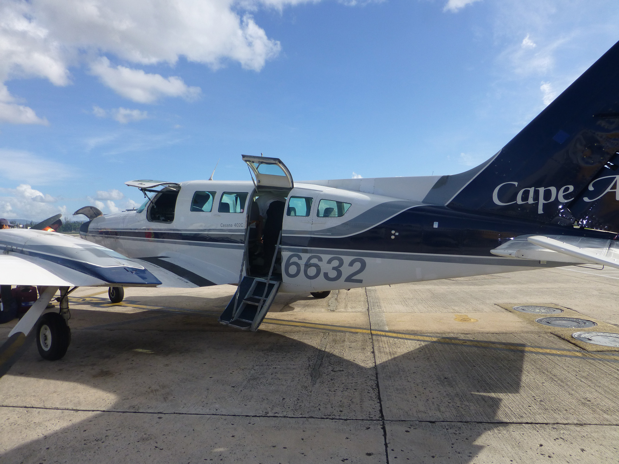 Our flight left on time around 8:00am. For some reason our flight was quite turbulent and they even asked the flight crew to fasten their seatbelts for a portion of the flight. We landed in San Juan, Puerto Rico just after 12:00pm. We walked down to where we would normally check-in at the Cape Air counter and noticed the entire section of the airport was blocked and closed. We had to take an elevator down one level and wait for someone to escort us to the doorway. Once he arrived we were taken outside into a van. They took us to the other part of the terminal where they had a temporary set up for Cape Air. Our flight was not until 3:15 and hoped to be moved up to the 12:40pm flight. Unfortunately the flight was full and we had to wait.