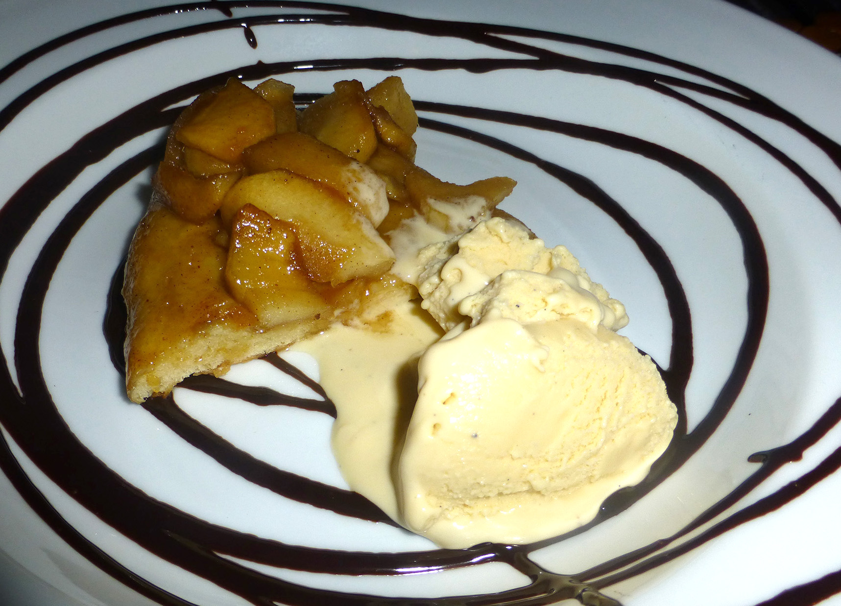 It was paired with roasted veggies and lemon. It was outstanding. Then for our dessert and final course (thank goodness) was an apple tarte tatin that Ted presented it to us.