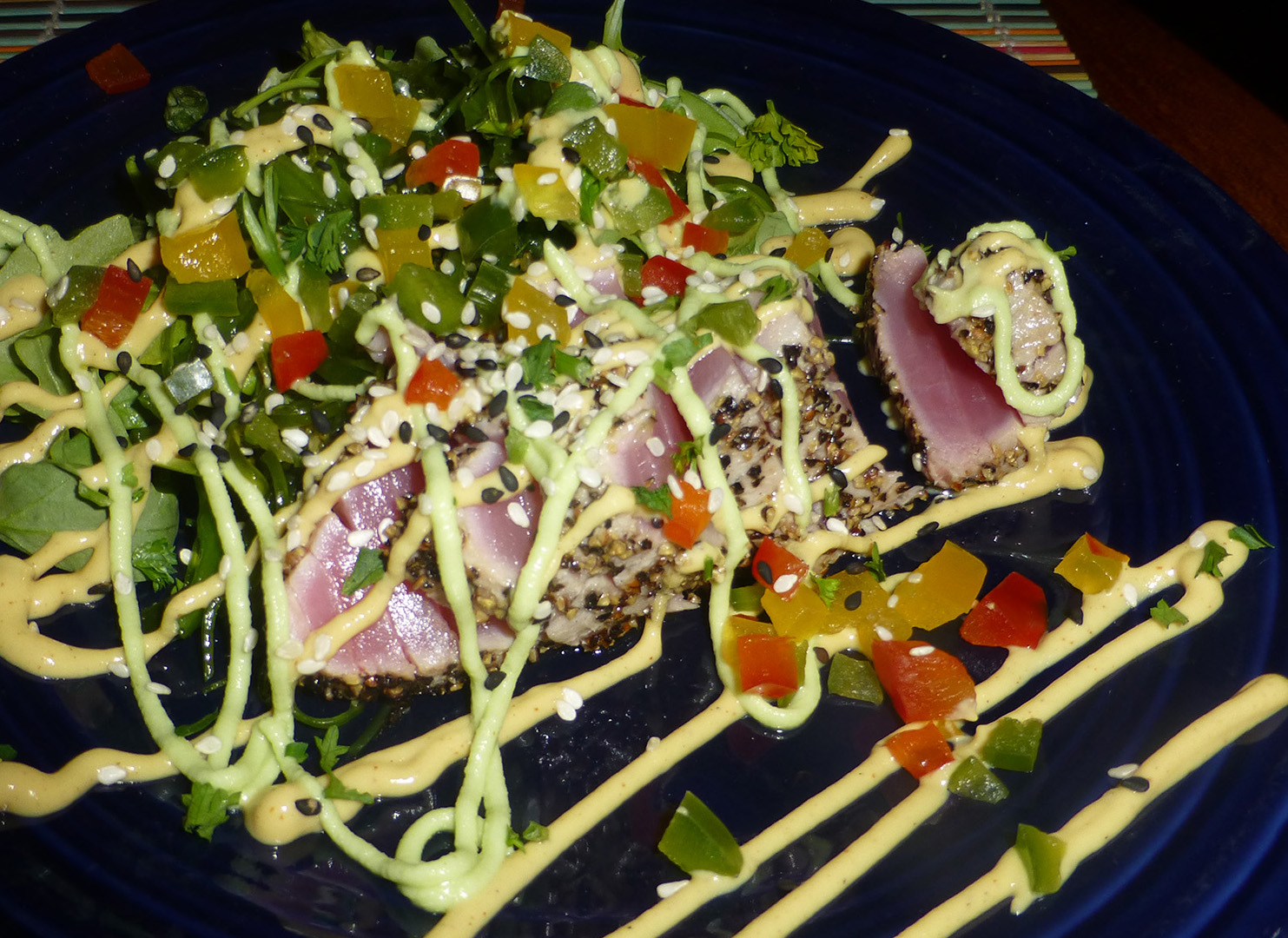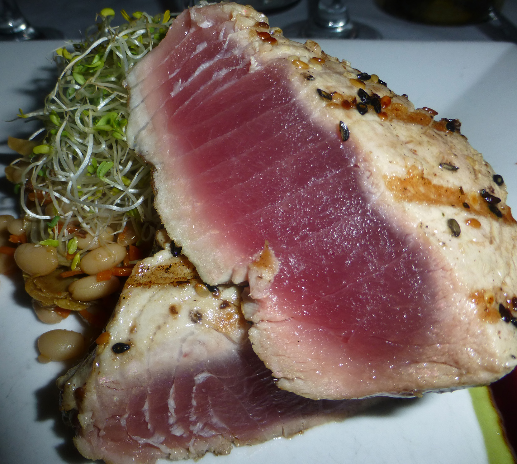 We all sampled our appetizers and everything was tasty. For our main courses, my husband and I had the tuna served rare, while our friends had mahi mahi and lobster ravioli.