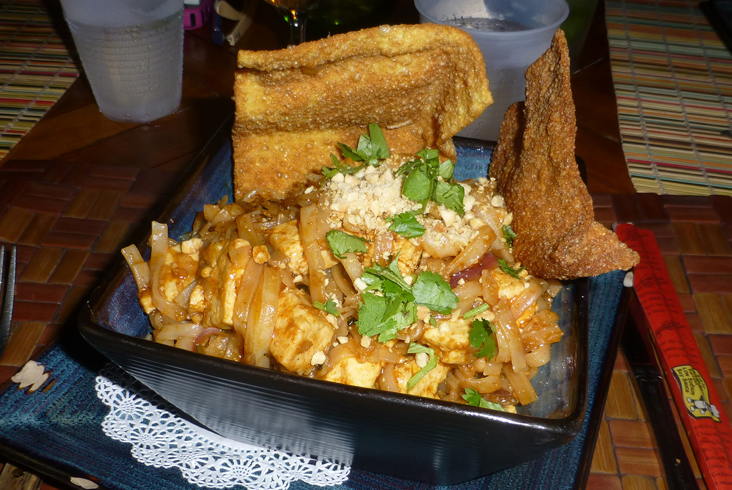 The men had the ahi tuna for appetizers while I had the pork belly and Nancy had the chicken lettuce wraps. It was then on to the pad thai. Everyone ordered the ultimate pad thai, besides me I just ordered the tofu pad thai. The ultimate pad thai includes shrimp, steak and chicken. Everything was delicious.