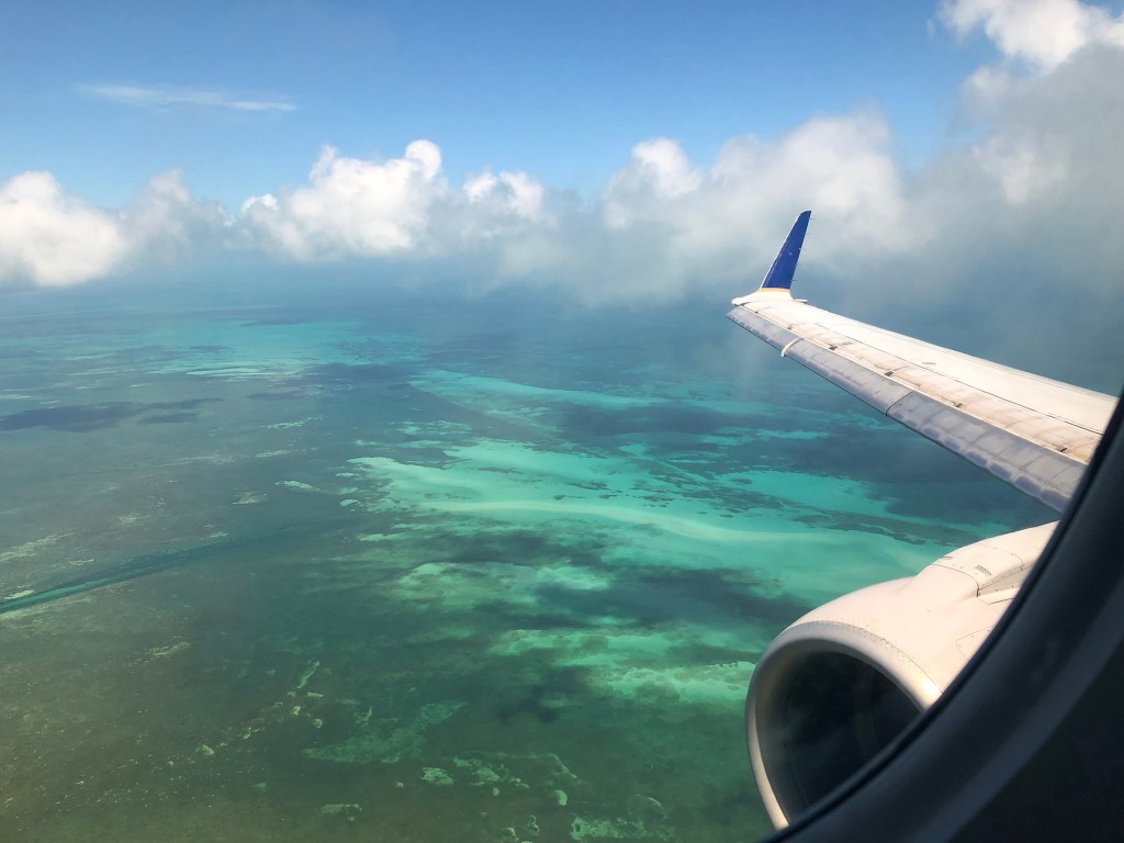 Soon it was time for us to walk to the gate. Last time we had a bit of an ordeal with changing planes and gates. This time, however we lucked out. It wasn’t before long we were boarding the plane. The flight itself was a little bumpy along the way but not too bad. After about 2 hours I soon was able to see the beautiful hues of blues and greens of the water.