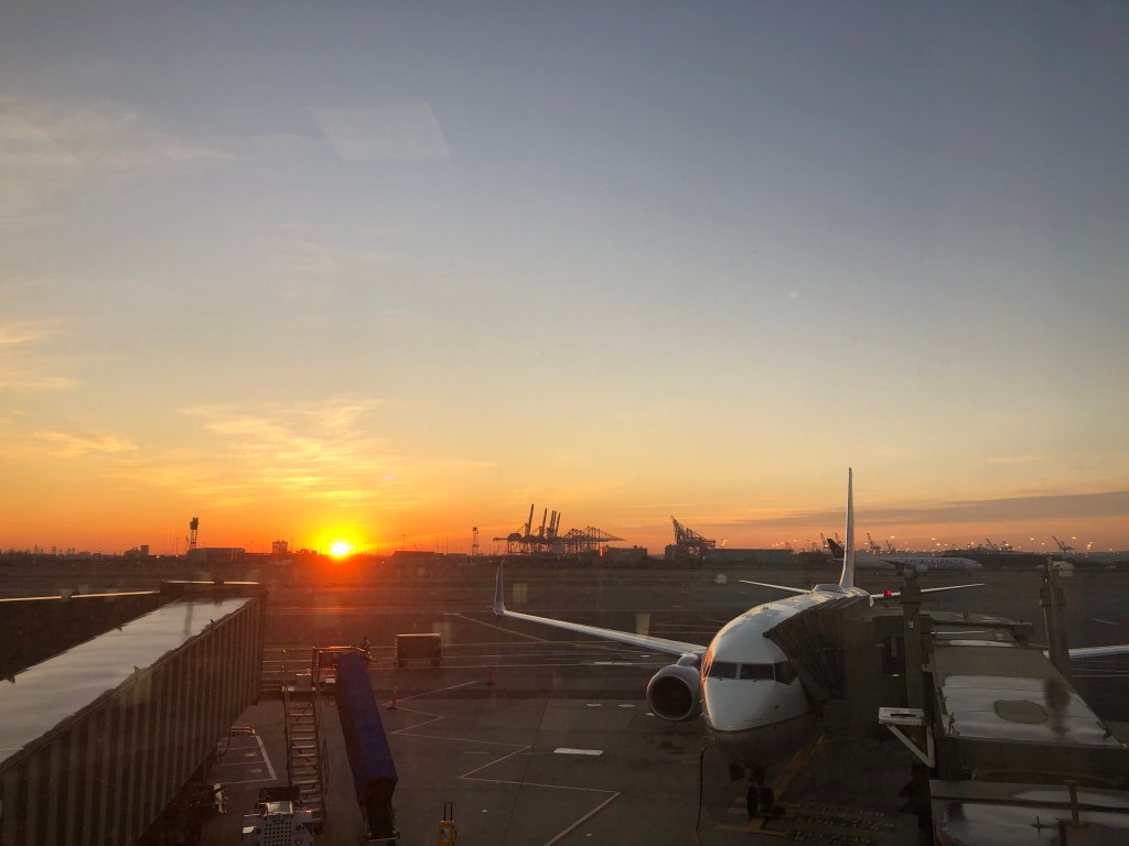 We arrived at the airport and decided to hang out at the outside bar/restaurant before going in through the terminal to the gate, since it was less crowded. A flight just arrived so the outside area was jam packed with people arriving which I always makes me so jealous – even though that was us one week ago. While we were waiting we got an alert that our 2:20pm flight was delayed until 3:10 due to it being delayed in Newark airport – great I though. At least we were not stuck in the terminal at that point so we were able to hang out a little longer.