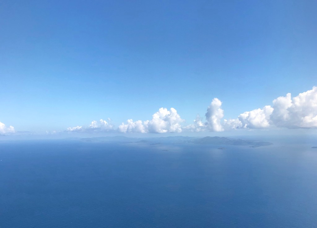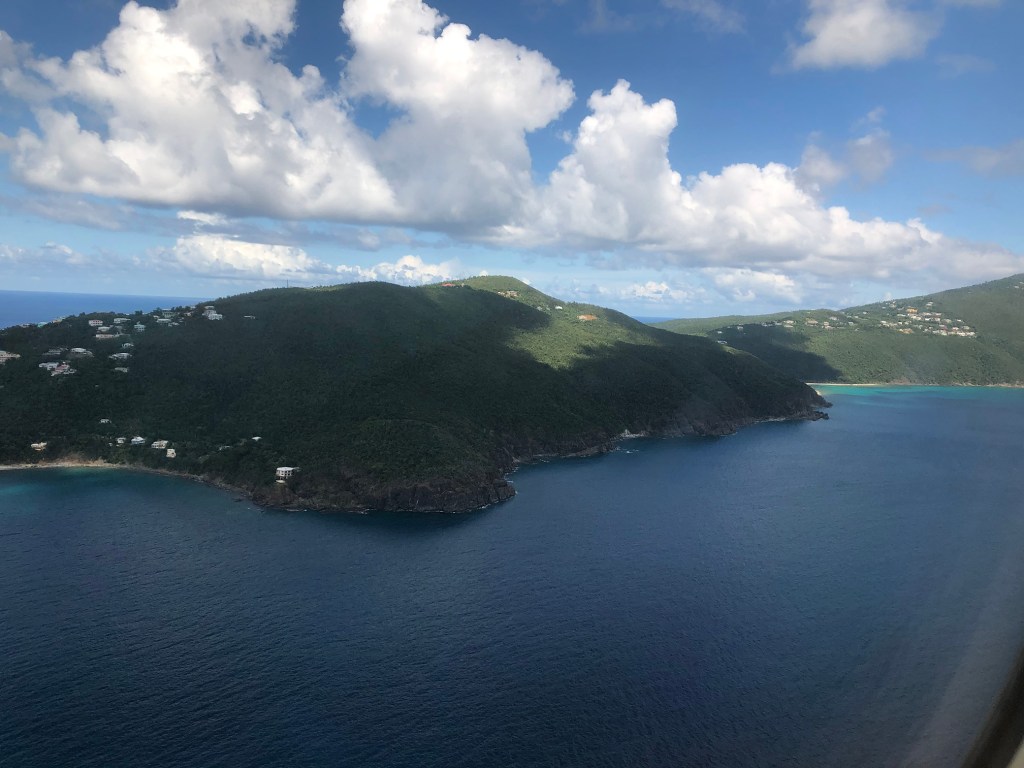 I made sure the alarms were set and ready to go for our car service pick up at 5:45am. Since we were sharing the car with our friends, it made the drive to the airport seem to go by pretty quick. Once we arrived at the United Airlines terminal in Newark Airport, we could not get over how crowded it was. People were just standing around and not moving… We were finally able to figure out which line was for TSA pre, which my husband and I are, since registering last year for it. (I highly recommend it, if you travel at least a couple times a year.) After we went through security we had to wait for our friends to get through the regular lines. Eventually they made let through as well and then we walked down to the gate to wait for our flight. I couldn’t get over that it was such a beautiful morning. Lately when we had been flying, there was usually some sort of storm system that was affecting our flights. We checked the status and saw that our flight was on time, but then they made the announcement that our gate changed. It wasn’t a huge deal since it was a few gates away. Eventually it was time to board our flight and soon we were on our way. The flight was about 3 and 1/2 hours directly to St. Thomas.
