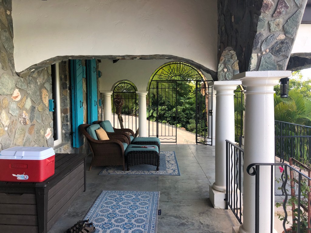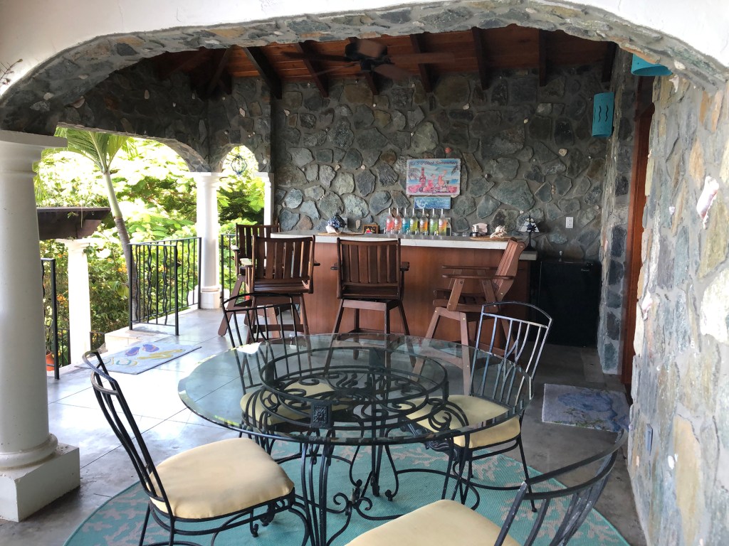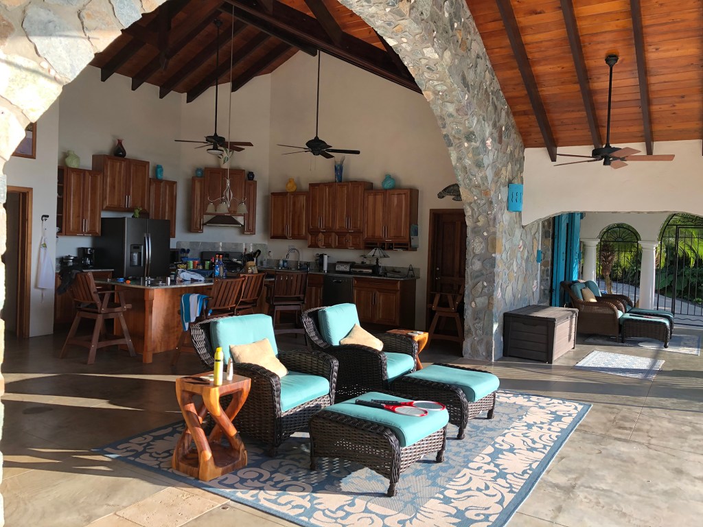 We woke up to which I thought would be another beautiful day, however while I was enjoying a cup of coffee, we noticed rain above St. Thomas. Eventually the rain did make it to our villa. Surprisingly even though it is open air, there is enough coverage that we were able to stay dry.