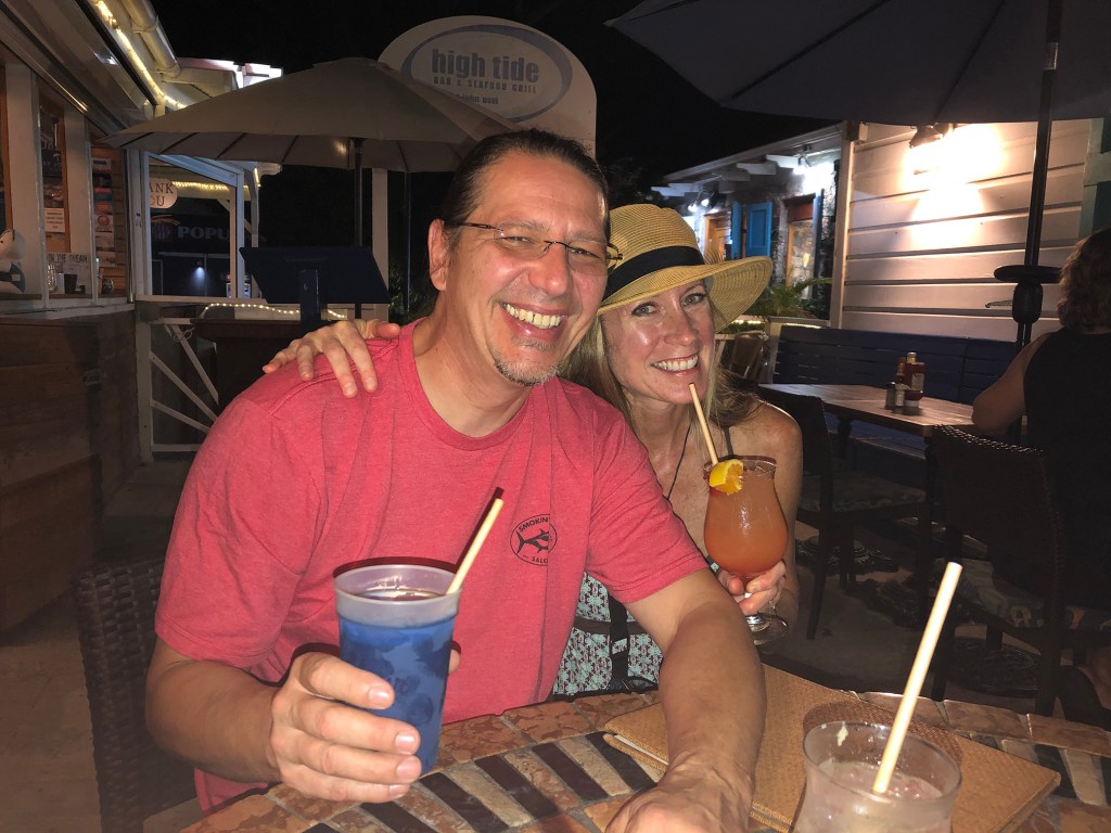 After everyone was freshened up, my husband drove the jeep back to Cruz Bay. We parked at Slim Man’s Parking Lot and walked over to Cruz Bay Landing for dinner. The bar was available so we sat down and ordered something to drink. I decided to go with the rum punch again. I was going to order the fish tacos, which I had there before, but they had a grouper special so I decided to go with that. I am glad I did because it was delicious.
