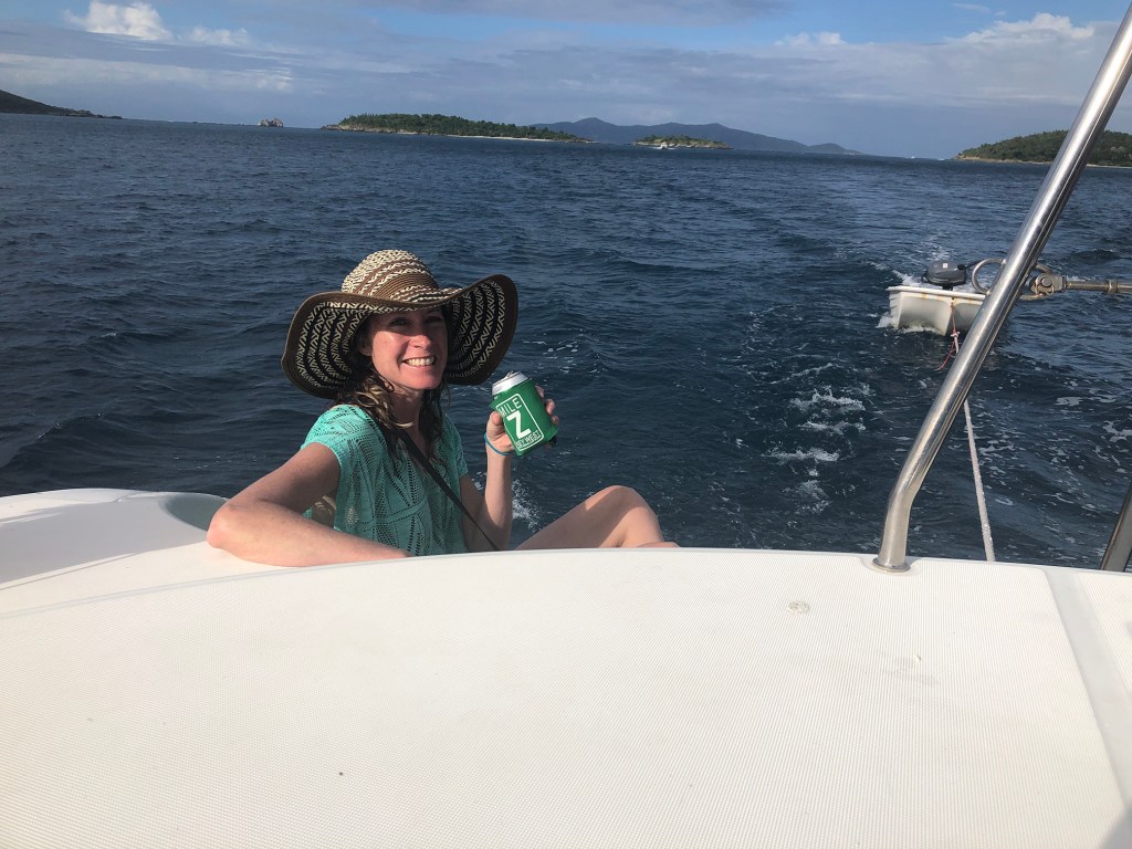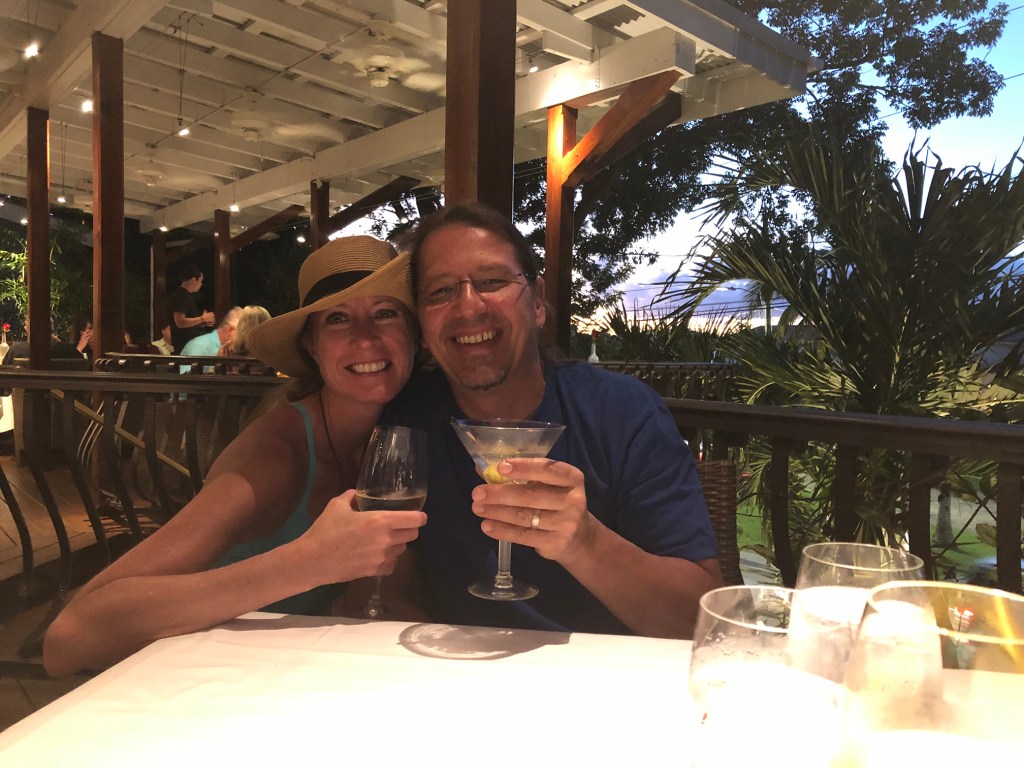 It wasn’t 2:30pm yet, but I noticed dark clouds were coming so I mentioned to everyone that I was going to swim back to the boat because I didn’t want to get caught in the rain. My husband and our friends wanted to check out the One Love Bar before getting back to the cat, so I told them I would wait for them on the boat. I wound up talking to John and Michelle while I waited for everyone to return.