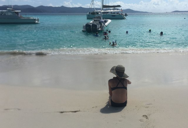 From there we sailed over to White Bay, which is always such a sight to see. The color of the water always gets me. It is just so beautiful. John and Michelle told us to have a great time and be back by 2:30pm. We thanked them and jumped off the cat and swam to the beach. I grabbed a swim noodle to make it easier. I usually don’t have a problem getting to the beach, it is the return swim I have problems, may be because of the painkillers?