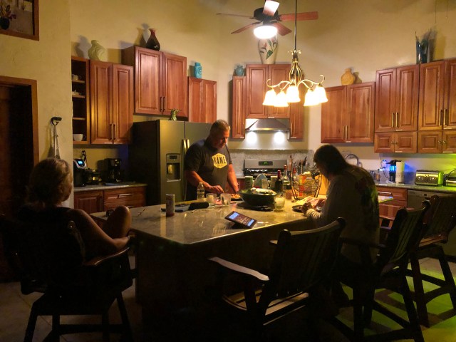 After the sunset, my husband grilled up the red snapper, while our friends prepared some sides.