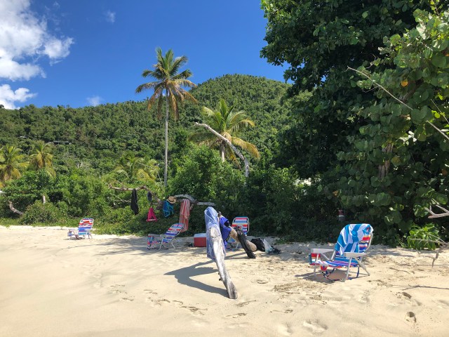We hopped back in the jeep and my husband drove us to Trunk Bay. There were only a couple vehicles parked so we were able to find a parking spot quite easily. We grabbed all our gear and headed to the beach after paying the admission fee. We walked onto the beach and found a perfect spot to relax for a while. I noticed that we were practically the only ones on the beach. I couldn’t believe how empty it was. It was nice to show our friends such a beautiful place without being crowded.