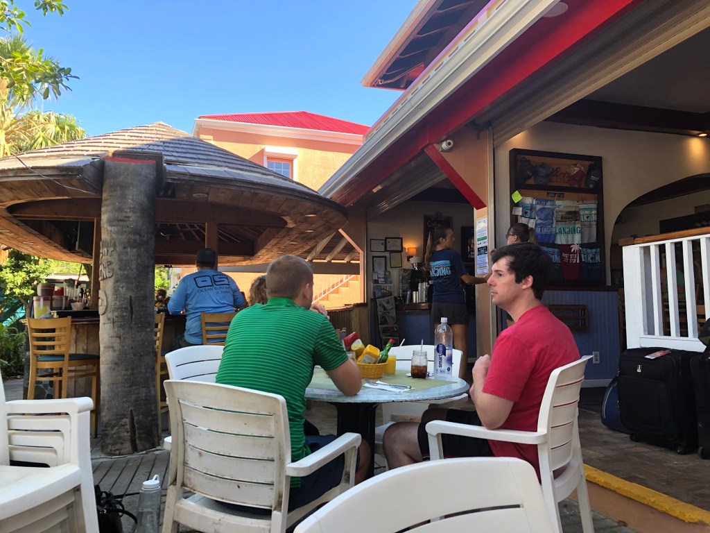 My husband dropped us off near Cruz Bay Landing so we grabbed a table while he dropped off the rental. We noticed that everyone else had the same idea because of all the luggage lined up along the side of the restaurant.