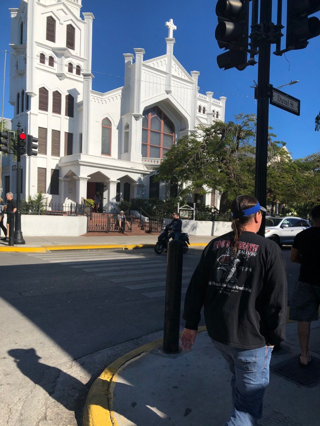 The taxi dropped us off and we walked in to check in. We saw David at the desk and he gave us a big hello. He told us our room wasn’t ready, but would be in about an hour or so. It wasn’t a big deal since we didn’t need to change, so we left our luggage in the check in area and made our way onto Duval. To us, it never gets old making that first right hand turn on to Duval. It makes it feel official that we are back in Key West.