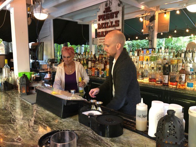 Besides for a couple new signs/branding, the overall atmosphere looks exactly the same with the tropical feel and color ambiance. We walked in and sat at the bar and listened to a few more songs that Zack was playing. We were planning on going to Rick’s after to check out Caffeine Carl who was playing there with Geortge. I was kind of puzzled though thinking how can he play there while the Mile 0 Festival is going on at the stage right outside of Rick’s on Duval? I figured I would message him just in case to see if indeed he was still playing. I am glad I did because he wasn’t feeling well and not playing at all that night. In hind sight it worked at well because we were both pretty tired from the day. Once Zack finished up his show we headed back to the Gardens, but not before another Kodak moment!