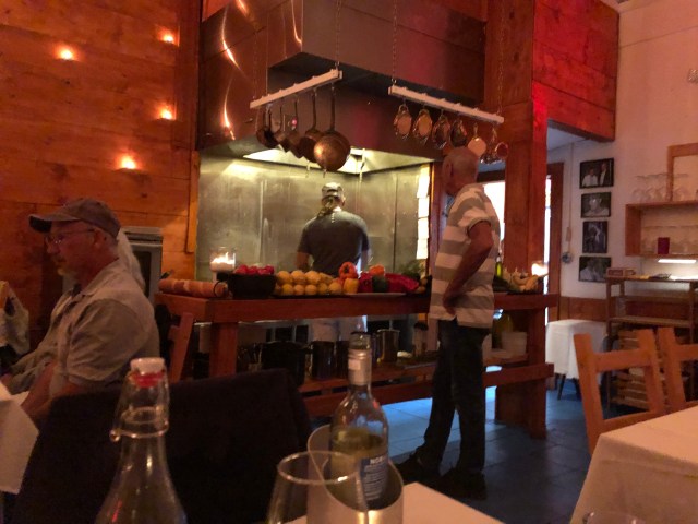 We felt like we were watching a show from the Food Network. Also the decor inside is lit with many candles lining the walls which make it very romantic. Every table was full so it was a bit loud. Mostly all the tables were larger groups as well.