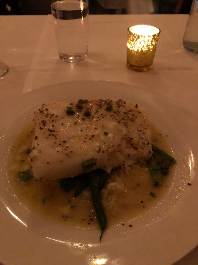 It was getting cooler out so they sat us inside. This was the first time we ever sat in inside and it was nice and cozy. I had the lamb chops to start and my husband had the escargot. Not really a surprise, we both had the hogfish entree for dinner. That dish never ever disappoints and always tastes so good. (I think it is the sauce…. you could put that sauce on anything and it would taste good).
