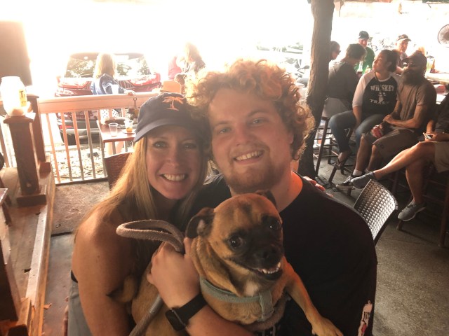 We said goodbye to Gabriel and told him we would catch him when he was playing at Captain Tony’s again later on in the week (which unfortunately we totally forgot his Wednesday evening show and it turned out to be the only time we could see him). We walked down to Hog’s Breath and through their gift shop. Once we walked in, the place was packed. After a couple of minutes one seat did open up. Luckily there was enough room for my husband to stand next to me. Zack acknowledged us as we waved to him. Not before long his son Kai came by with their dog Bullet. The dog was so cute. We also got to meet to his mom who was staying with them while we were in town.