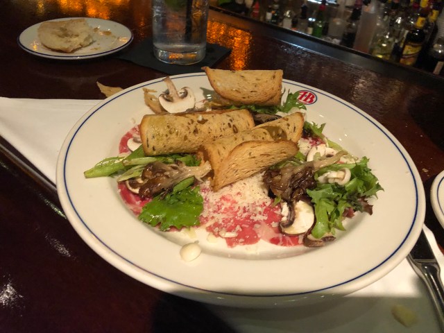 We walked back to the Garden’s to regroup for a little bit before going out to dinner. One of my husband’s favorite places to eat is Berlin’s. He likes the old dark retro feel it has. I enjoy it as well, so we wound up walking down to the A&B Lobster house. We walked in up the stairs and into Berlin’s. We sat at the bar and the bartender took our dinner order (it is the same menu from A&B Lobster house). We were the only ones in there but we didn’t mind. I started with the oysters rockefeller and my husband had the beef carpaccio. For dinner I had the yellowtail snapper and my husband had the filet mignon. As always, the food was delicious.