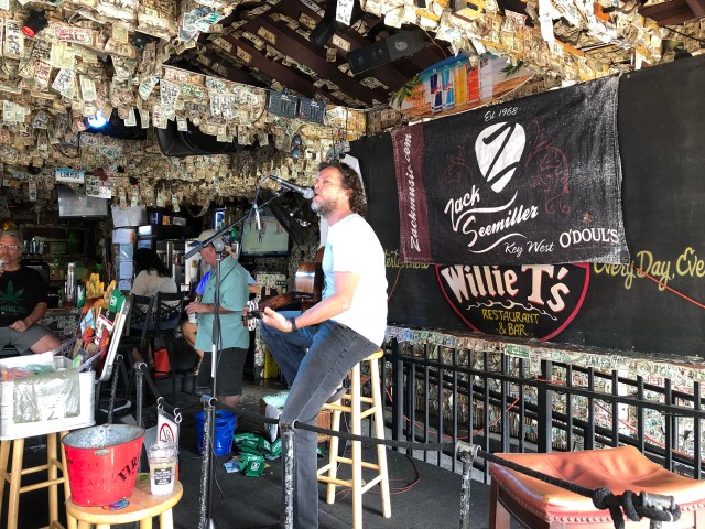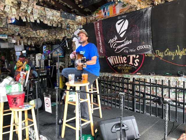 We realized we had not stopped in yet so we walked on it. It was quite busy but found a couple seats at the end of the bar. It seems that every time we go to the Green Parrot we wind up striking up a conversation with someone sitting next to us. This time it was a guy named Scott. He was traveling by himself and it was his first time to Key West. We talked him for a bit and told him we were going to Willie T’s and catching part of Zack’s show before dinner.