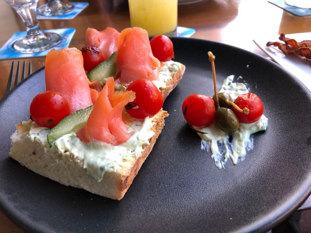 My husband and I usually save Bagatelle’s for our last full day breakfast, but both felt like going there. We walked in and they just opened up. (I didn’t realize they didn’t open up until 9am). They sat us outside on the porch where we could watch the action go by on Duval. I remembered during our last visit I really enjoyed the salmon toast so I ordered it again. My husband had the huervos rancheros which are also always very well done (even though they forgot to add the refried beans to the dish).