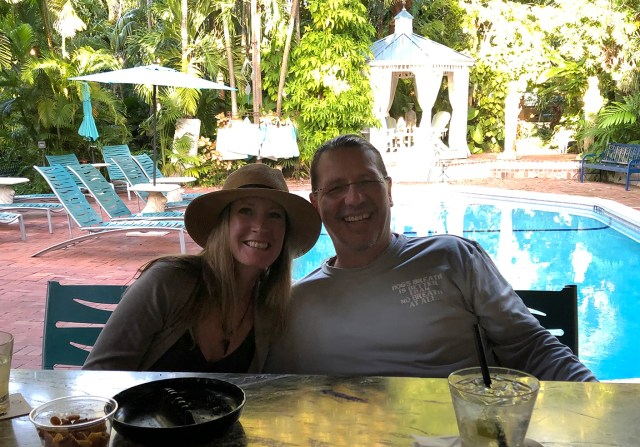 As everyone took the stage we noticed that George wasn’t playing, but there was a new lead singer. We weren’t sure of his name – he was just okay. We enjoyed a few songs. While we were there the bartender told us our next round was bought. And then we saw a familiar face from our favorite shore town in NJ, Lavallette… Vincent!! He came up to us and we thanked him for the drinks. It was fun to see him in Key West. Small world!! Later on I went in the back to thank him again and meet his wife but unfortunately they left. I wanted to stay longer but the long travel day was starting to set in, so we left and made it back to the Gardens and called it a night.