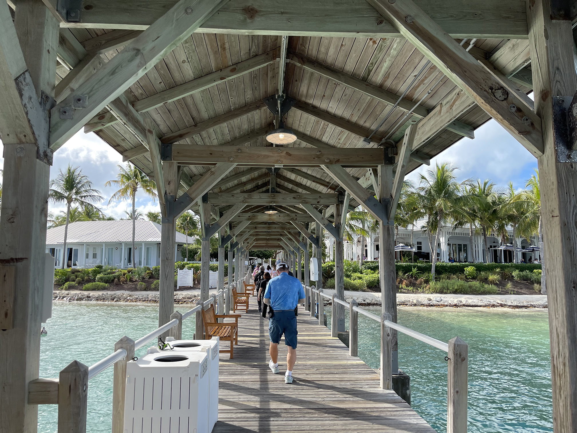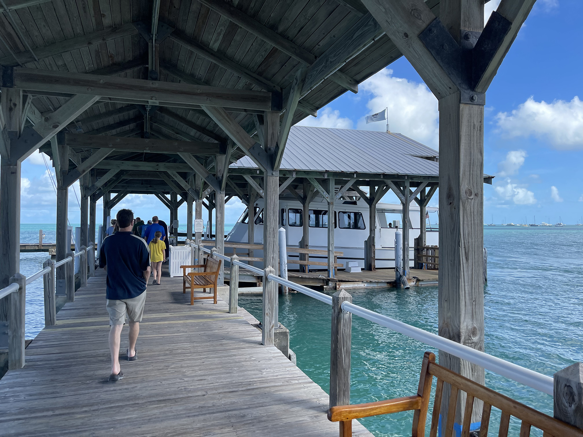 Eventually we got our coffees in hand and walked down towards the Opal Resort (which used to be the Margaritaville Resort, and the Westin before that). It was nearing 9:15am and I noticed that the ferry was already there and loaded with people. We tried to drink all of our coffee before boarding, but sadly had to throw reset of it away.