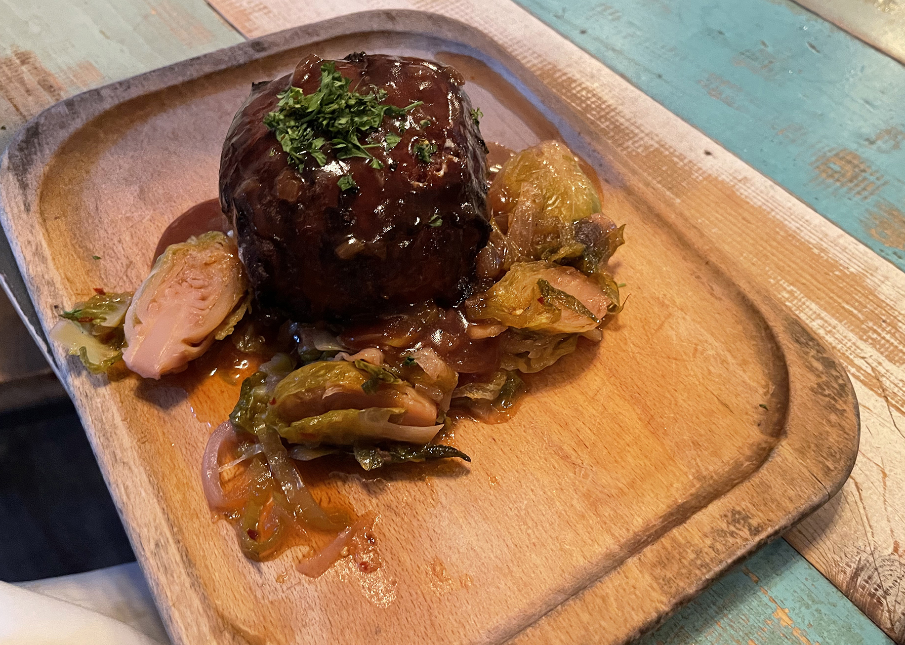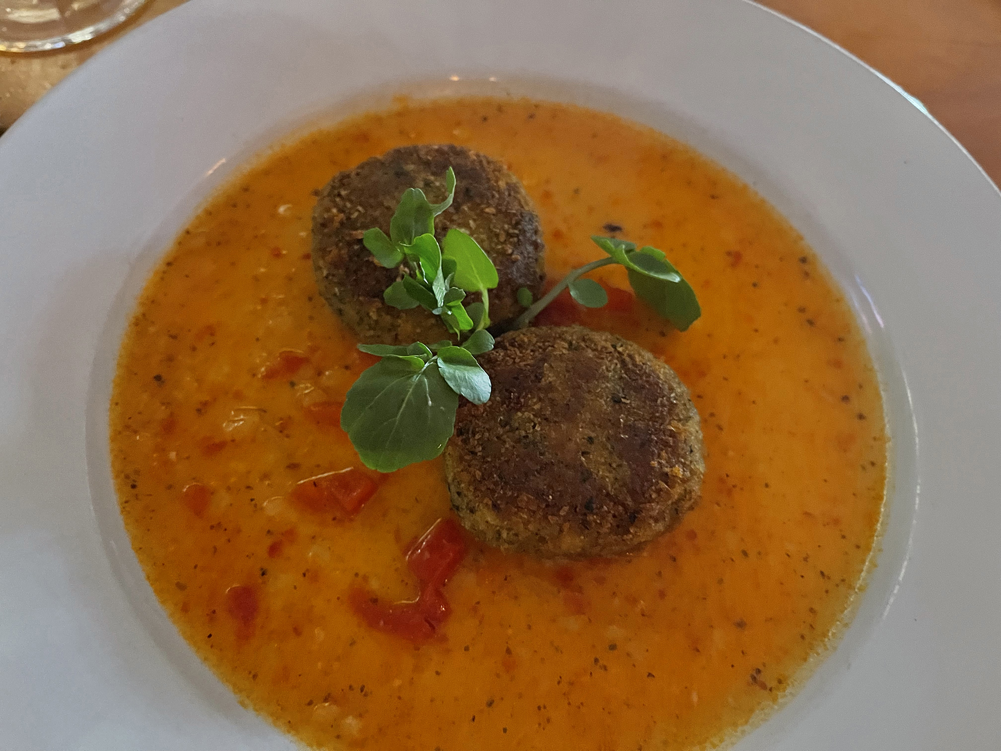 We ordered our appetizers and main meals. While we were sitting there, the winds started to pick up quite a bit. So when our server came back over I asked if we could move inside and apologized for the inconvenience. She said it wasn’t a problem and we walked back inside, downstairs and wound up sitting at the bar since the tables were all occupied.