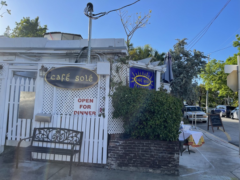 You can read my review of Cafe Sole here: https://www.tripadvisor.com/ShowUserReviews-g34345-d495527-r836001571-Cafe_Sole-Key_West_Florida_Keys_Florida.html