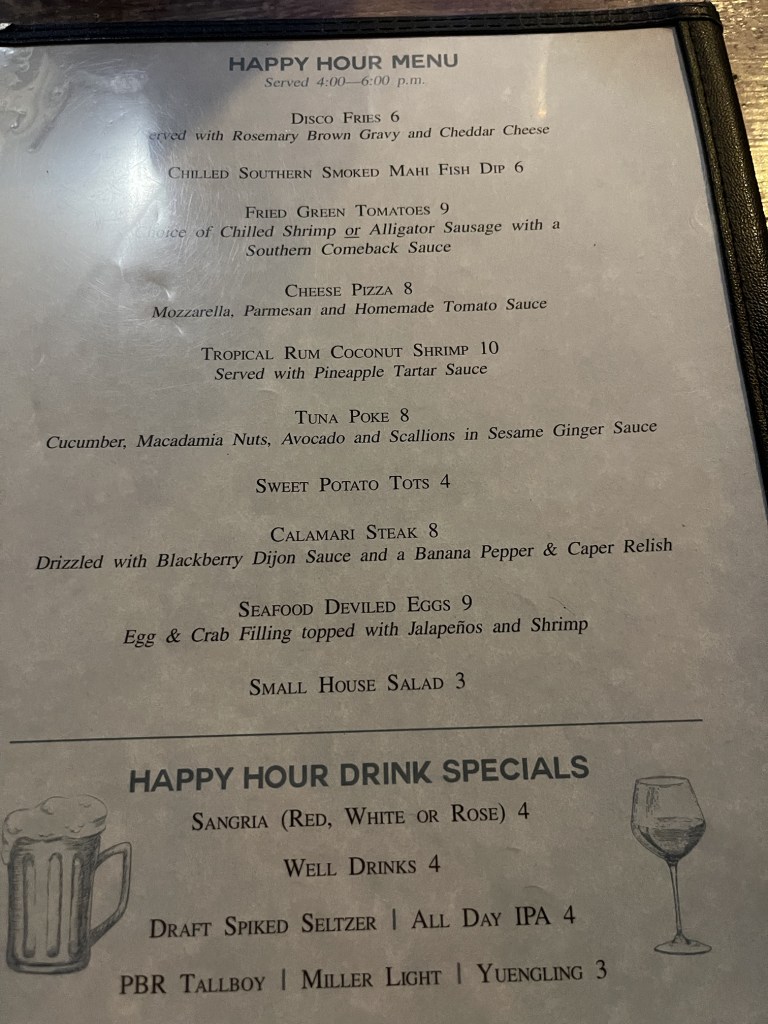 We probably could have ordered more but after the pizza I was quite stuffed. It was such a great deal. We had a couple of sangrias and all that food and I believe the bill was around $45? I would definitely go back to Off the Hook for their happy hour.