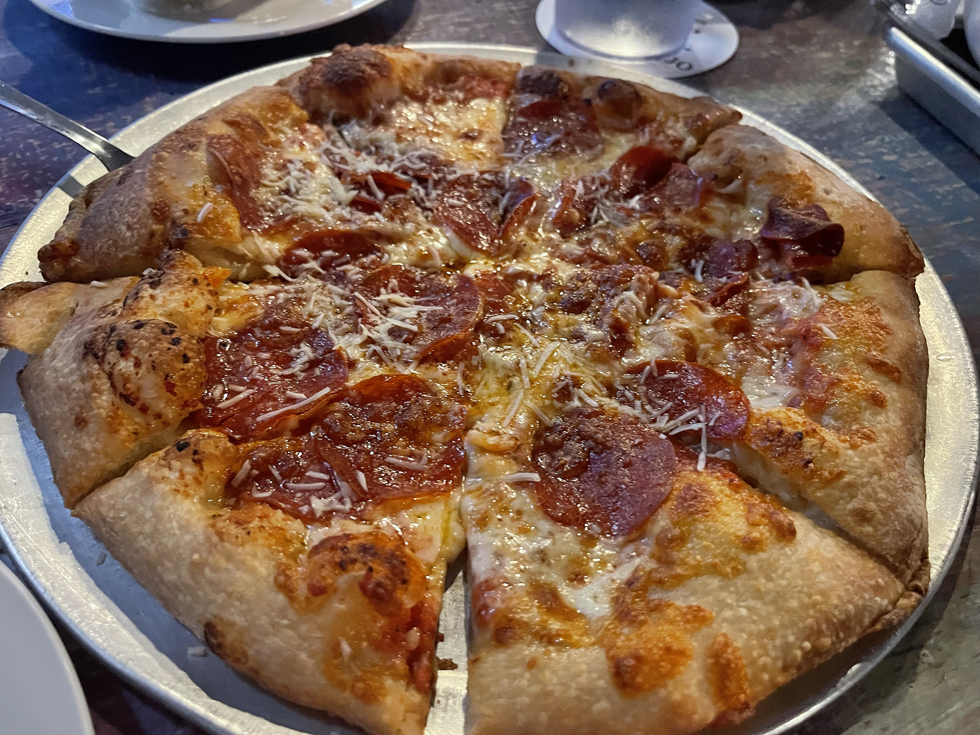 We looked at the menu and everything looked so good. We wound up sharing the pizza with pepperoni, tuna poke and the calamari steak.