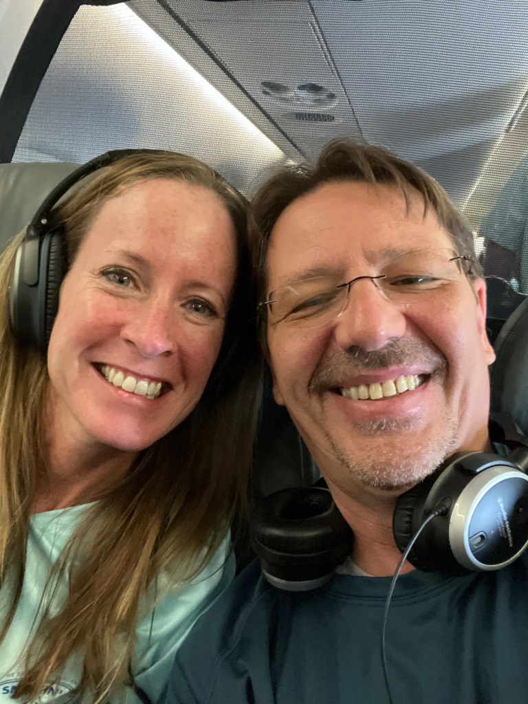 Jennifer dropped us off and we walked in to go through TSA. To our surprise it was empty. I think it took maybe several minutes to get through security? When we took the escalator down to the lower level we began to see all the people waiting. That’s what we were expecting! Luckily we were able to find a table to stand at near the food and beverage part of the airport. While we were waiting I saw Lynn, the lady from Long Island. Thankfully her flight was leaving on time and so was ours. I wished her safe travels.
