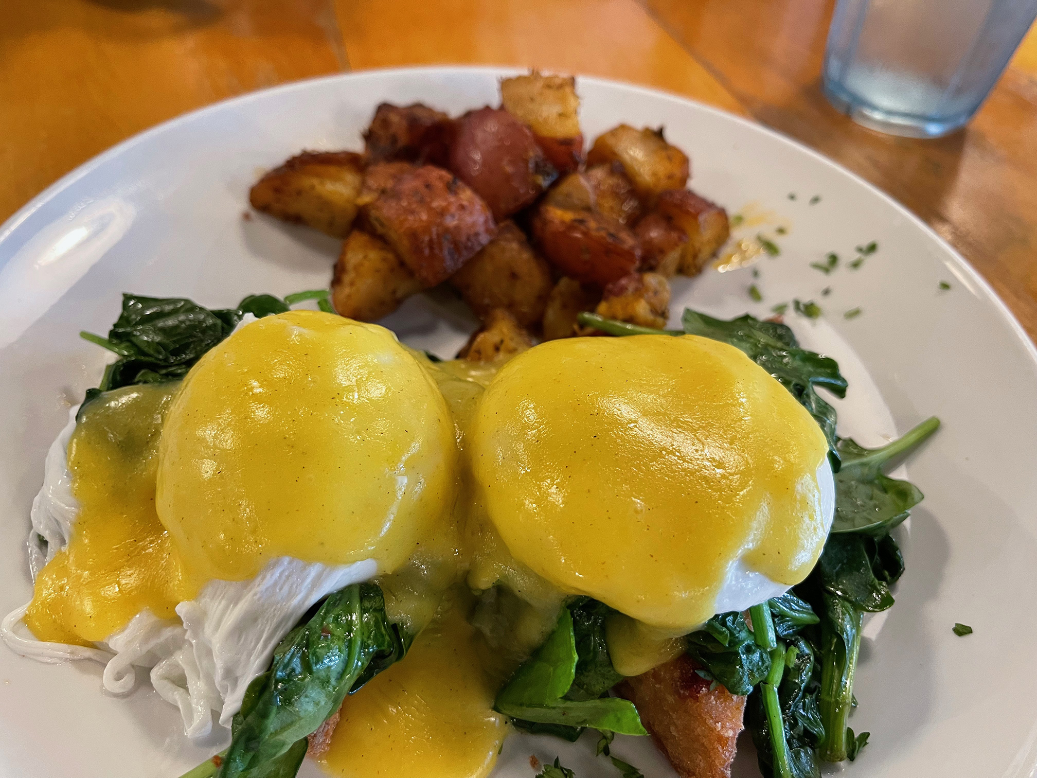 When we walked in there was no question we preferred to sit inside in the air conditioning. I like sitting outside but it was just too hot. We sat down and then Zack and Kai showed up. We had to order off our phones using the QR code on the table. They still don’t have menus since before COVID. It was a nice breakfast just talking and catching up since the last time we saw them a few months ago. When we were done with breakfast we thanked Zack and Kai and contemplated our next move.