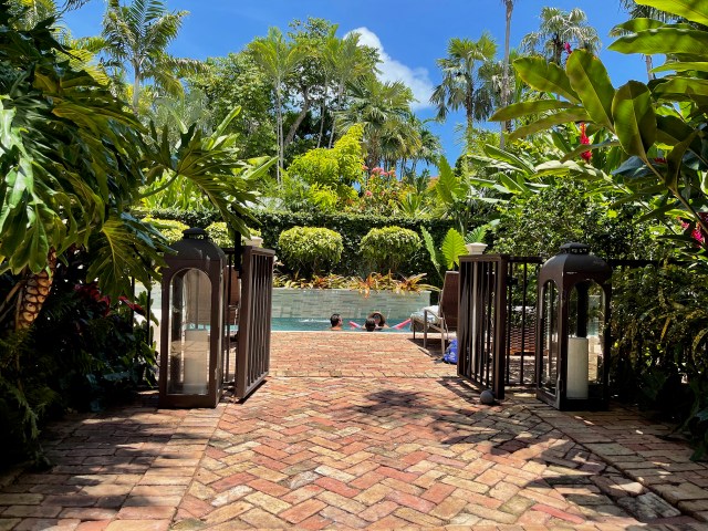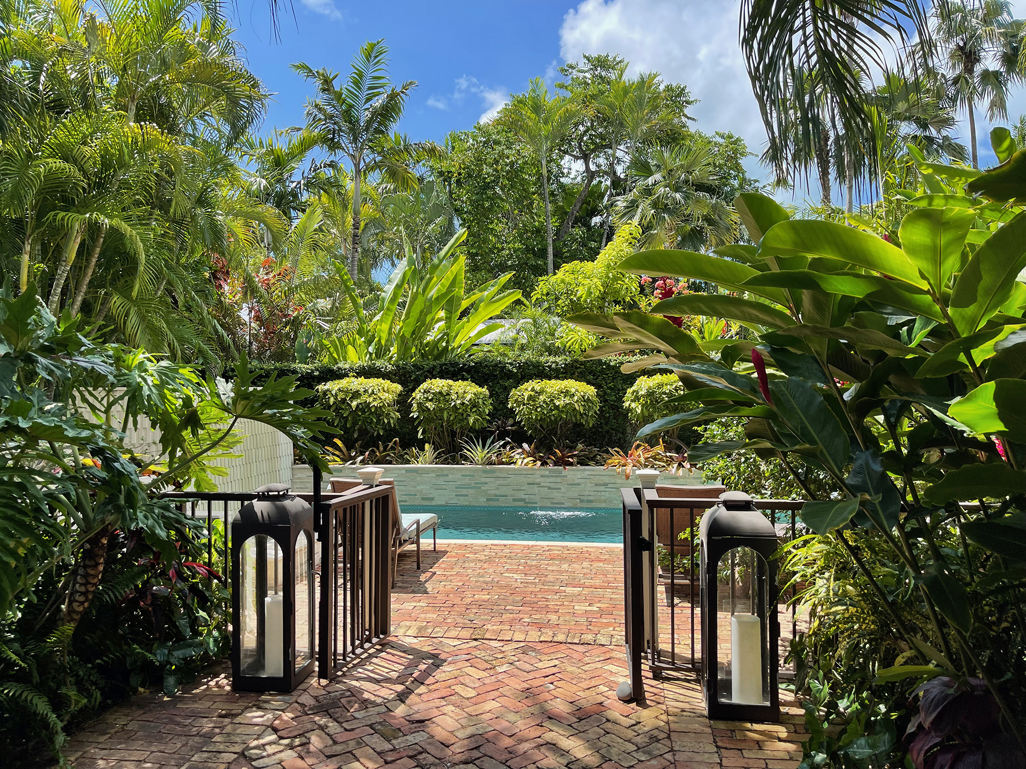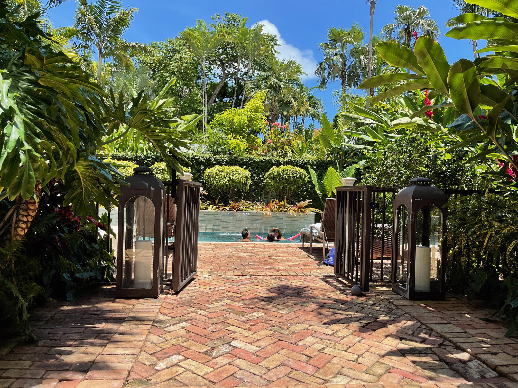 As we were passing Smather’s Beach I started to notice this horrid stench. It was awful and I knew what it was, the sargassum. It was super potent. As we made our way farther from the beach, the smell went away. Note to self, I would never want to stay on that side of the island during the hot summer months. Soon I could see the yellow brick wall that surrounds the property of the Gardens Hotel along Simonton which always gets me super excited. And yes once again we were staying at the Gardens Hotel.