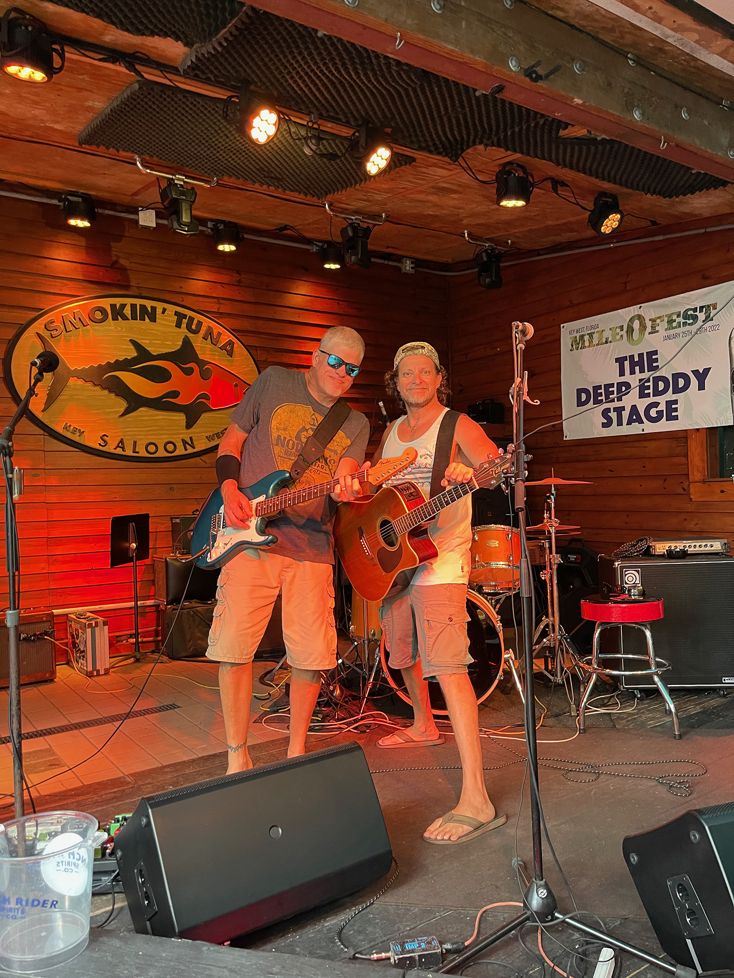 Then it was about that time to head on over to the Smokin’ Tuna to see Caffeine Carl and Zack play. We thanked Candice for the drinks and walked back down to Duval. We were trying to pick the shadier side of the street but there was no such luck. It was hot.