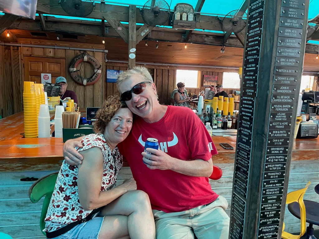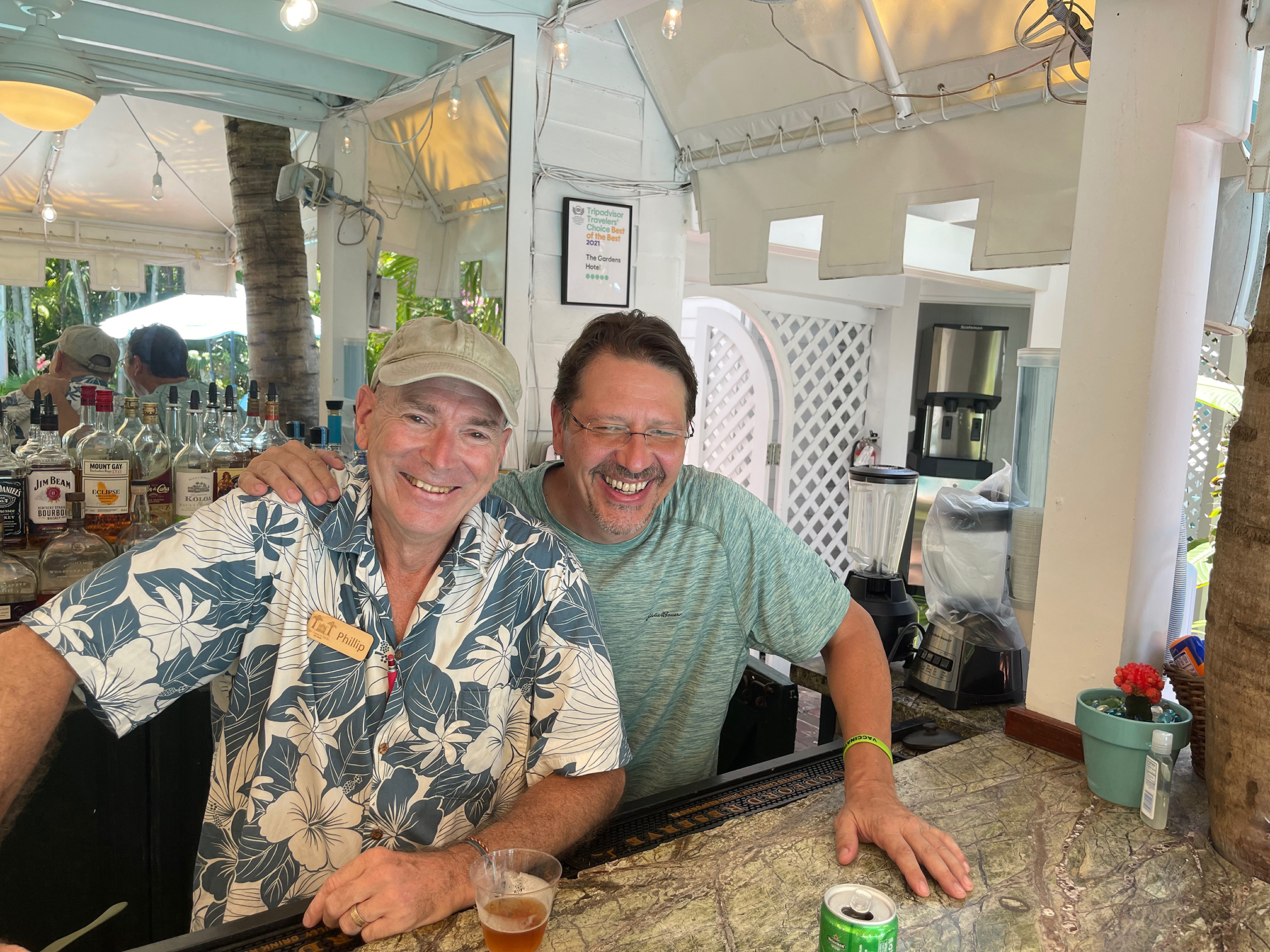 As soon as we neared the bar we saw a familiar face. It was Phil! We were so happy to see him and he as well. We each gave him a hug and sat down for a cold beverage before unpacking our things. It was so good to be back I thought. No matter how many times we return , it never gets old.