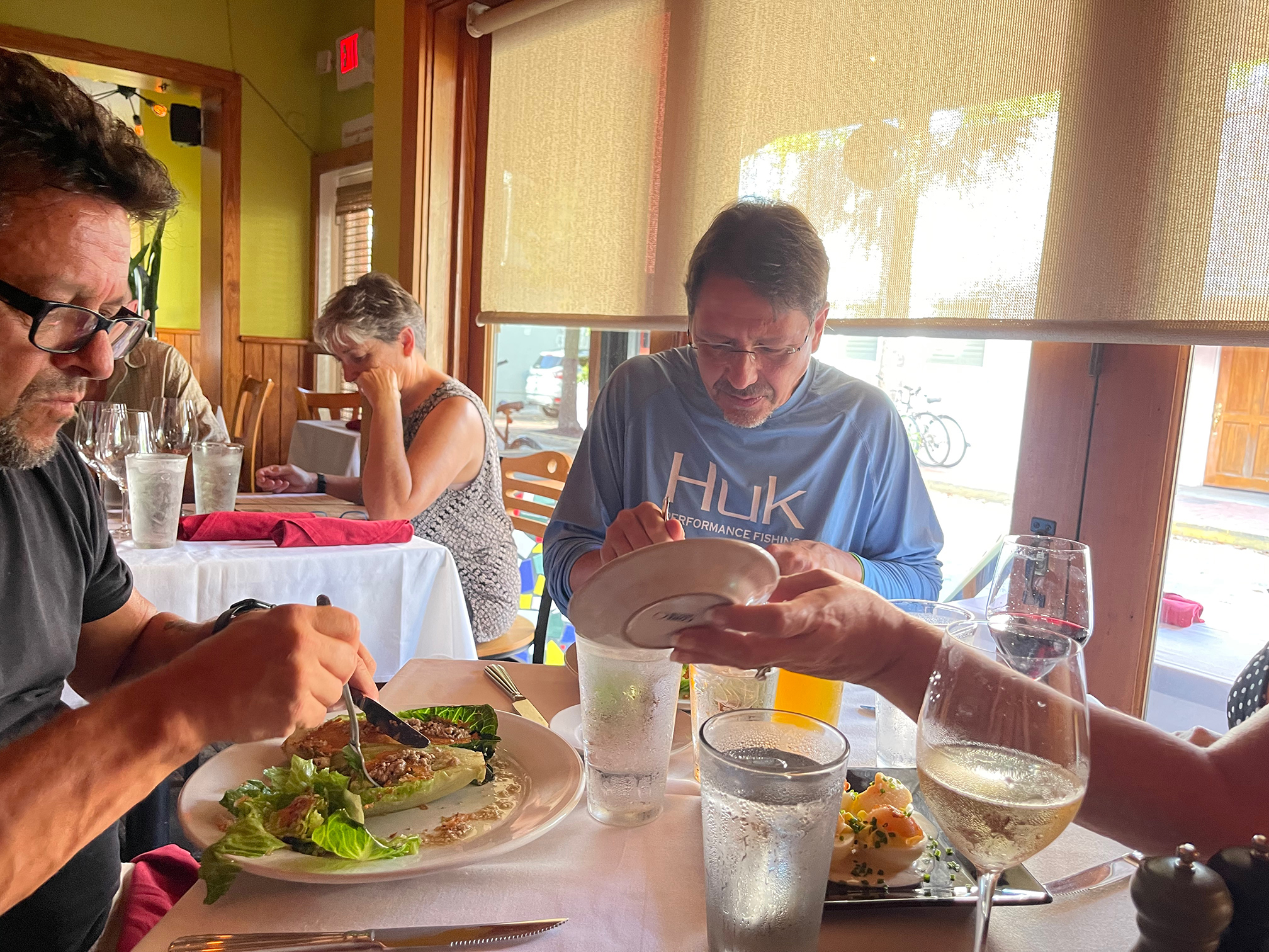 Eventually it became that time to make the walk down. It was getting quite hot and steamy again. We walked down Simonton almost to the end before crossing on over to Duval. We got a message from Julie saying that Brent and herself were having lunch at the Seaside Cafe at the Mansion. We had never been there and since we had time to spare we thought let’s meet them there.