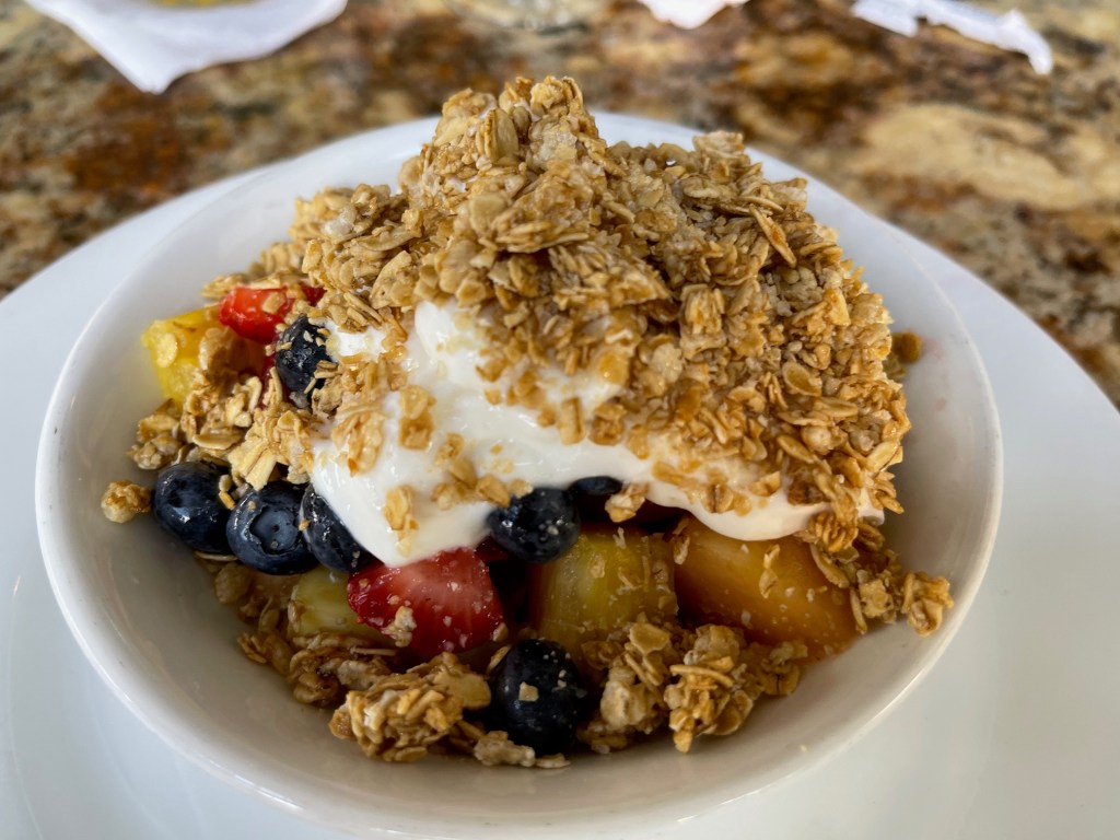The bartender gave us menus and chatted with us for a bit. Like Bagatelle, I enjoy La Te Da too for the people watching and of course the food is consistently very good. For breakfast I went for the yogurt with granola and fruit (no surprise) and my husband had the half order of the sausage and biscuits. I found that being it was so hot while we were there, I would eat less. I just wasn’t as hungry as I normally am. Don’t get me wrong I love the sun and heat, but after a few days it did get more intense.