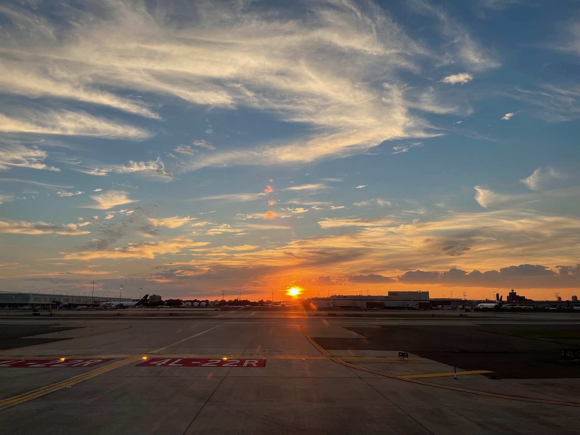 We finally landed around 8:00pm instead of 6:30pm. Since we arrived late, our plane had nowhere to go. The gate we were supposed to go to, still had a plane that had to depart. So we just waited and waited on the tarmac for about 40 minutes. Finally we were able to get to our gate. The only thing positive about the entire situation was I had never seen such a beautiful sunset like I did that night.